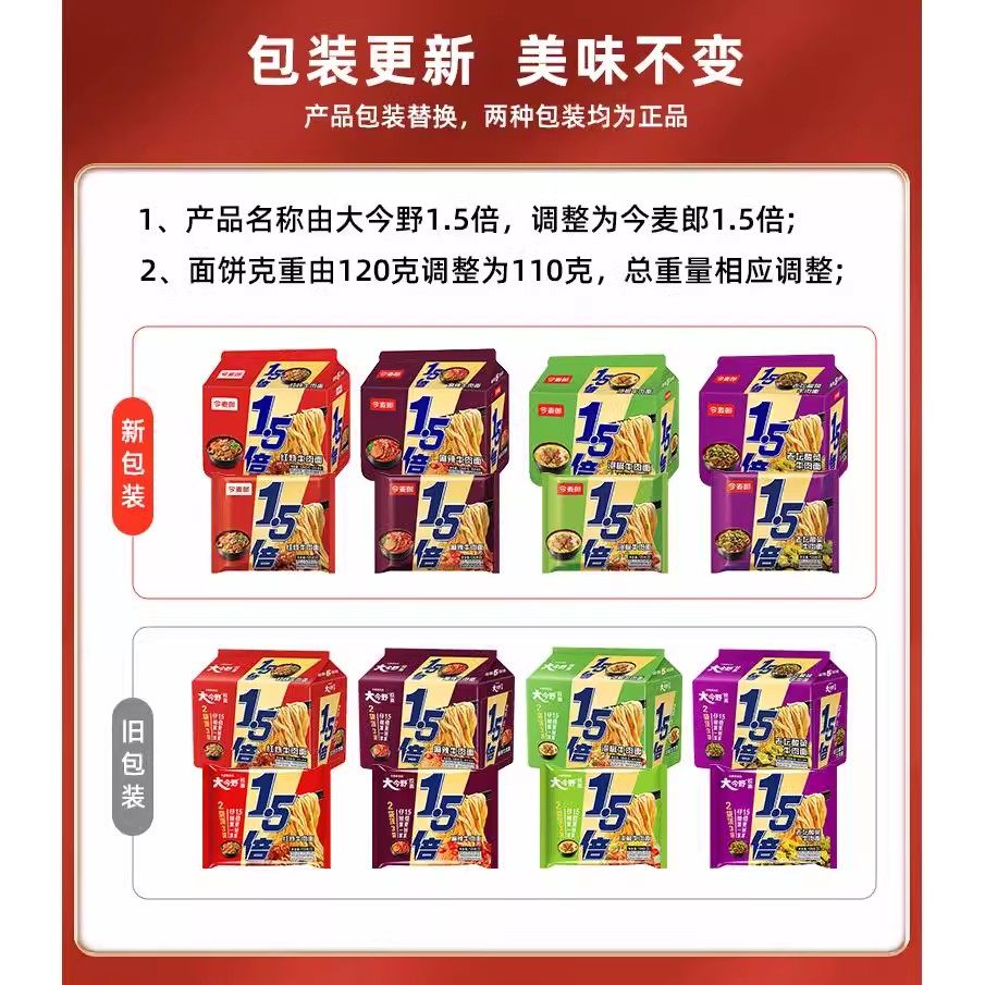 今麦郎1.5倍方便面一袋半大面饼夜宵速食宿舍免煮泡面红烧牛肉面
