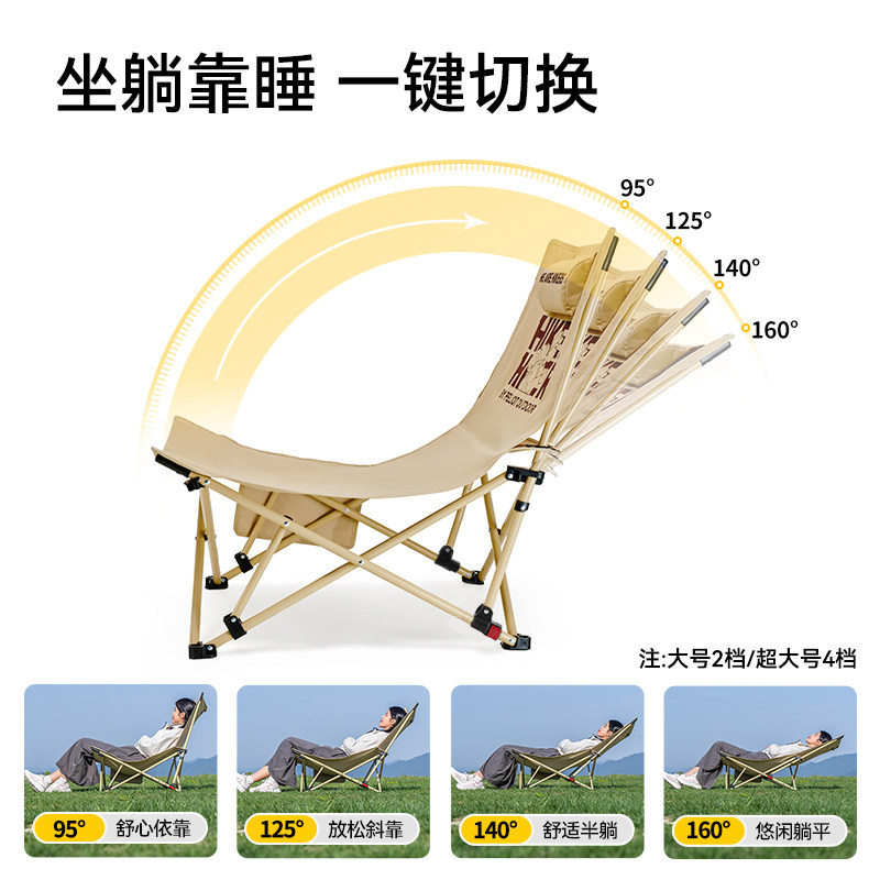 户外折叠椅加高月亮椅可调节躺椅露营椅子便携式沙滩钓鱼野餐椅子