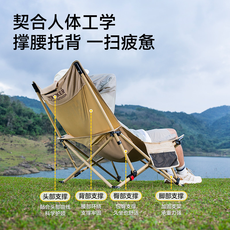 【HIKER】伯希和户外折叠椅子便携露营躺椅钓鱼月亮椅午休午睡椅