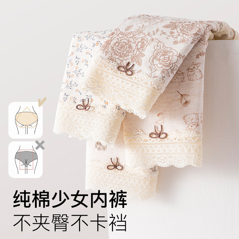 【3件包】爱慕内裤女花的藤蔓棉质底裆性感蕾丝中腰平角裤
