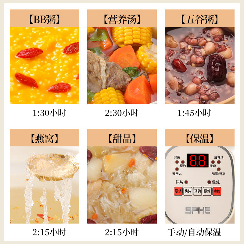 苏泊同款全自动电炖锅电炖盅煲粥锅砂锅家用陶瓷BB煲汤锅煮粥神器