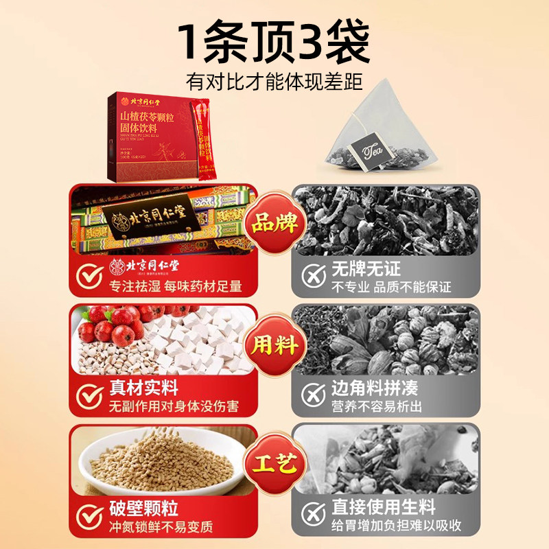 北京同仁堂山楂茯苓颗粒正品祛健脾开胃调理湿气重胃寒气养生茶