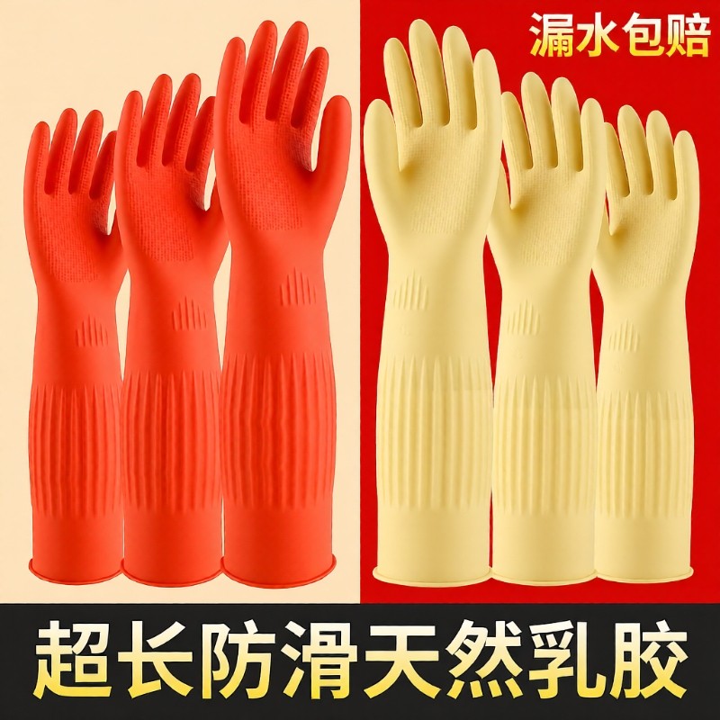 加长家务手套耐用冬季洗碗胶皮洗衣服厨房防水橡胶女耐磨乳胶清洁