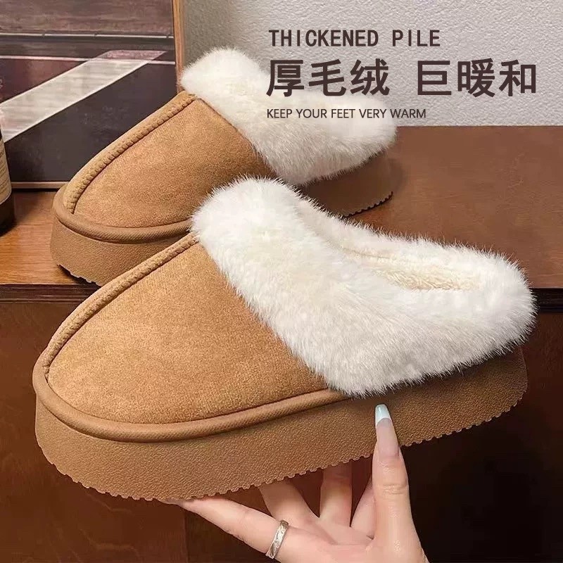 低帮厚底雪地靴女2025新款冬季懒人一脚蹬毛毛棉鞋加绒加厚女鞋子