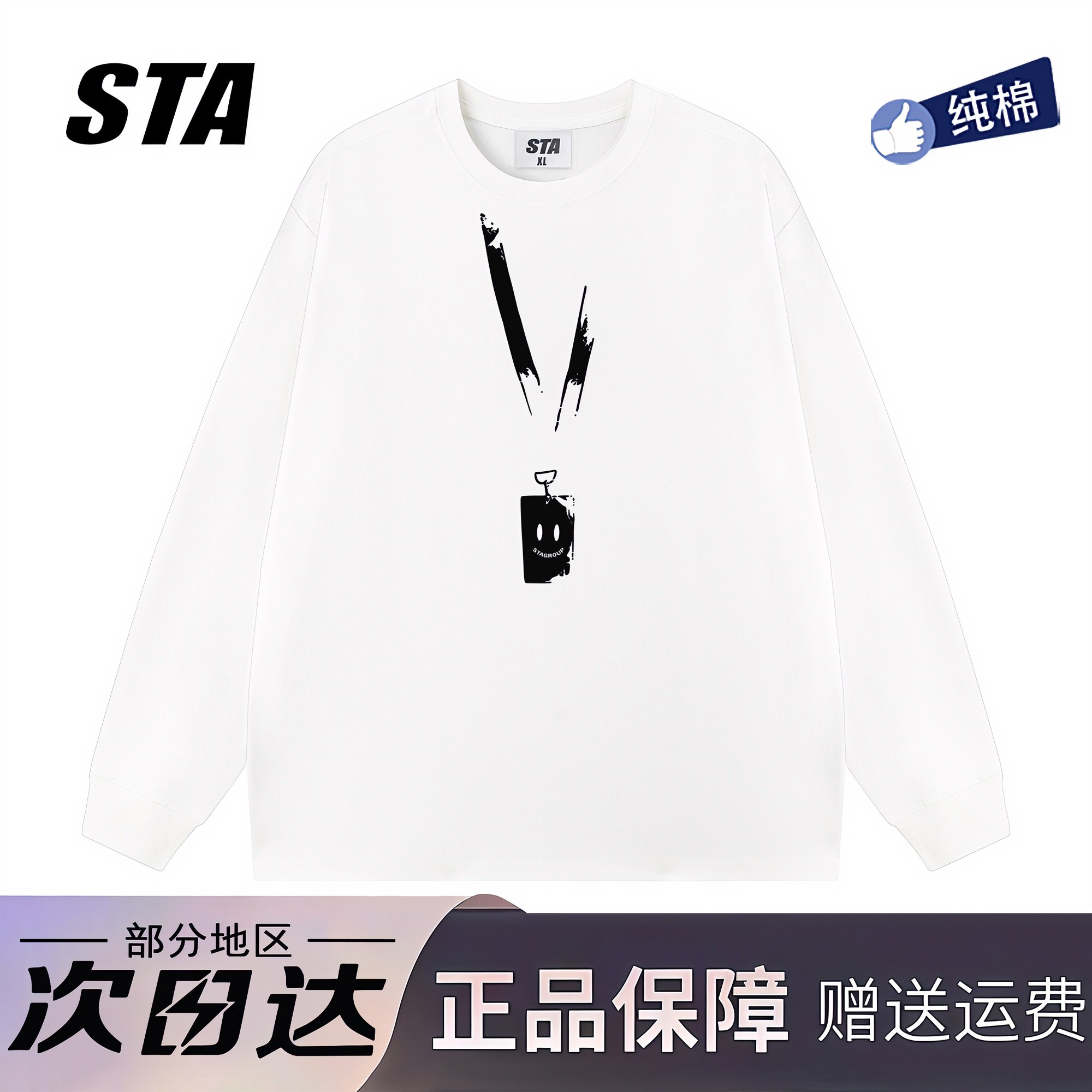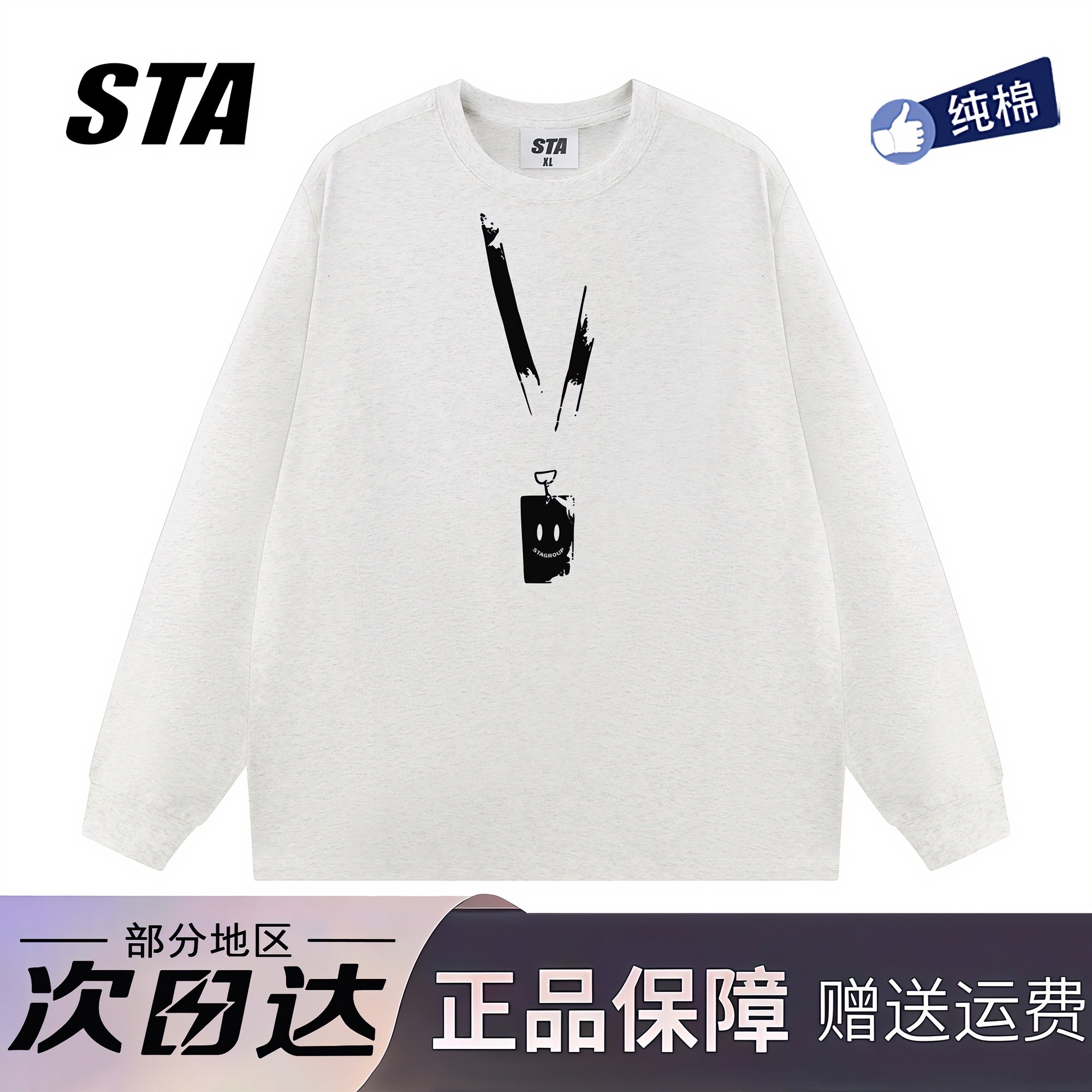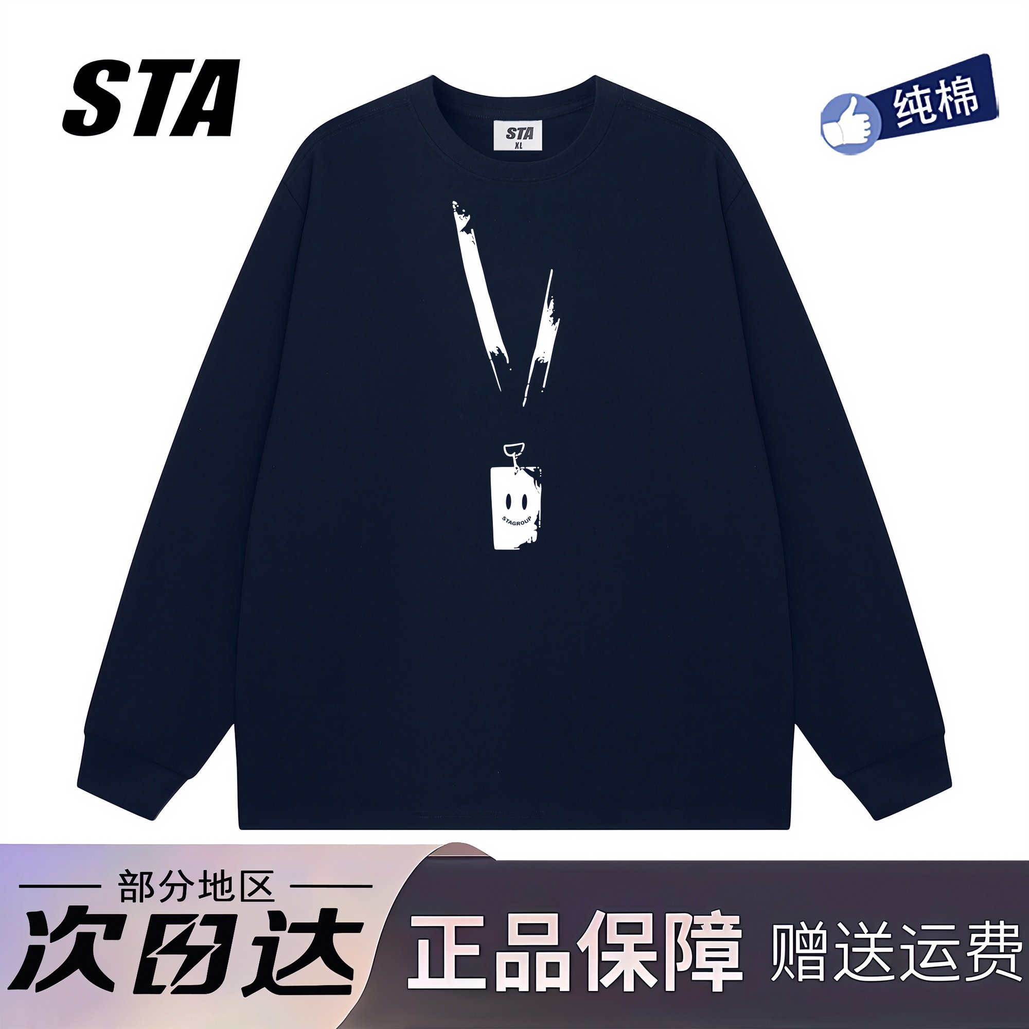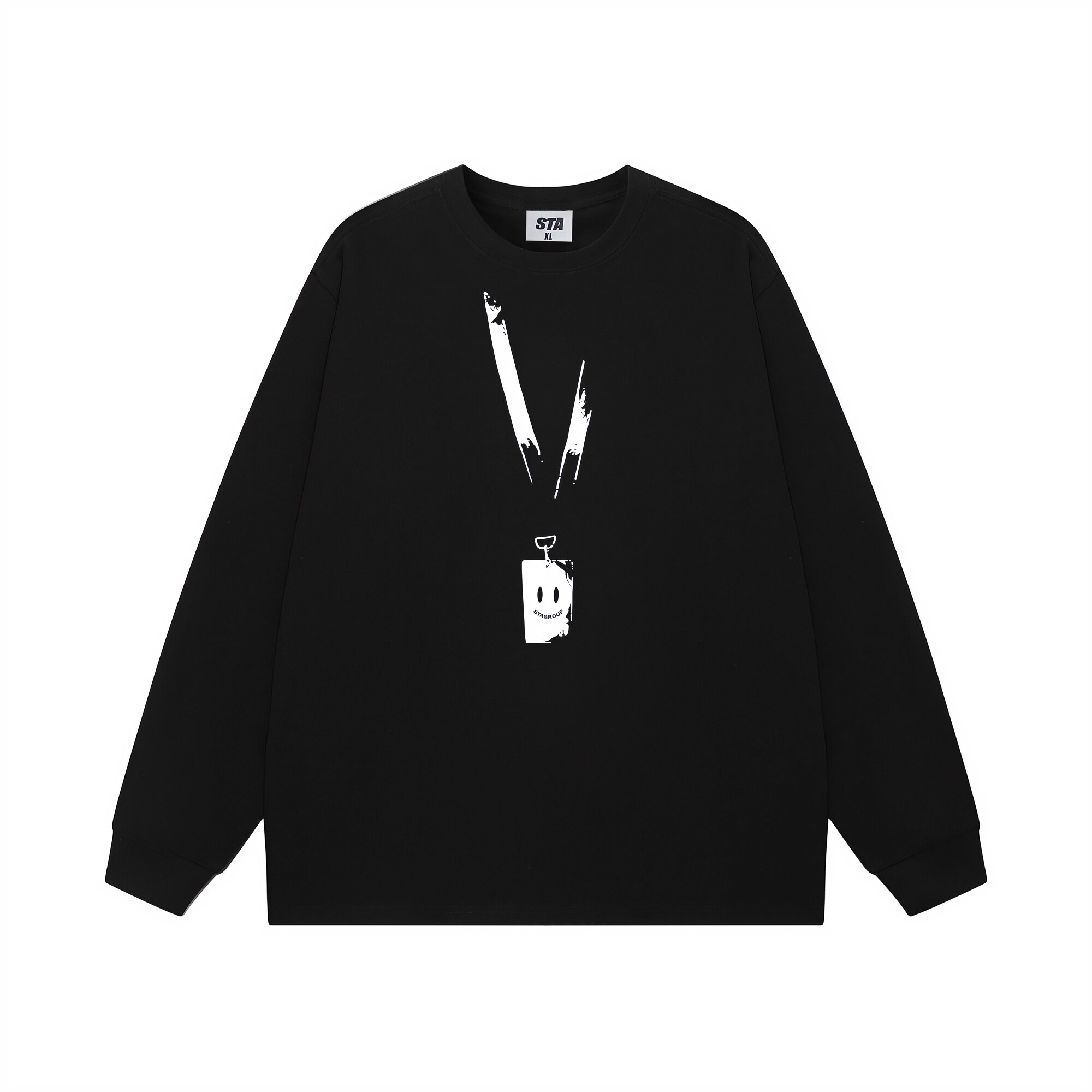 STA旗舰店美式潮牌重磅纯棉长袖男女高街复古情侣黑色圆领卫衣