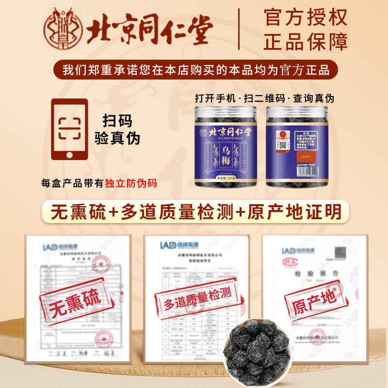 北京同仁堂乌梅干正品中药材乌梅泡水酸梅汤原料烟熏大果乌梅