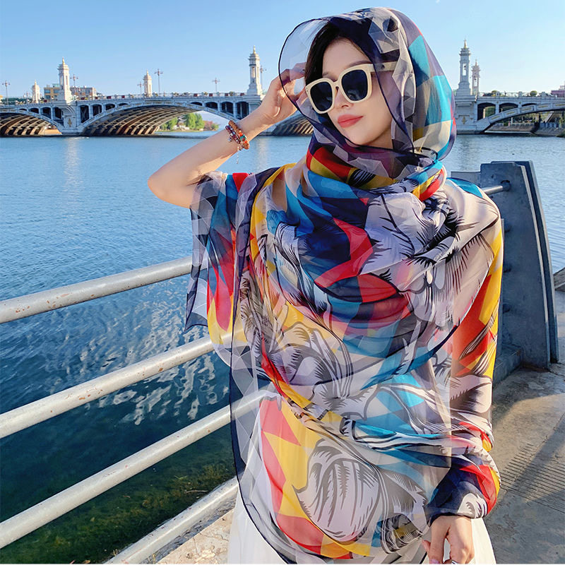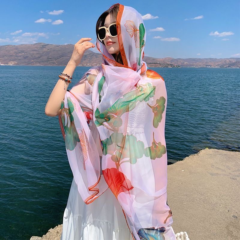 夏季防晒薄款披肩2024新款民族风外搭纱巾丝巾女海边沙滩三亚旅游
