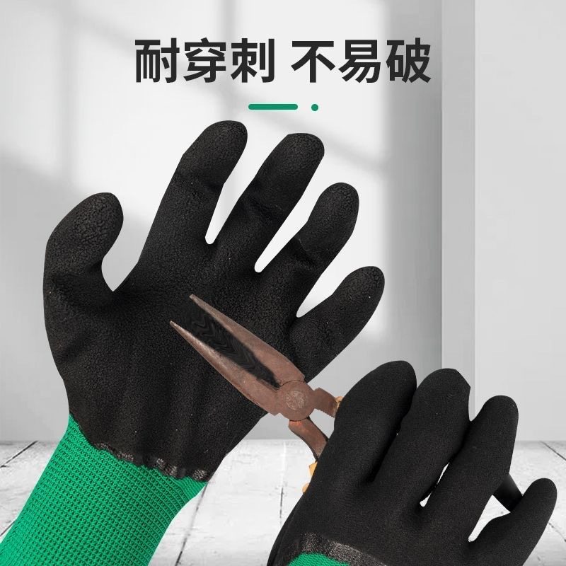 手套男工地干活园艺发泡王耐磨透气防滑挂胶涂胶工作劳保橡胶防水
