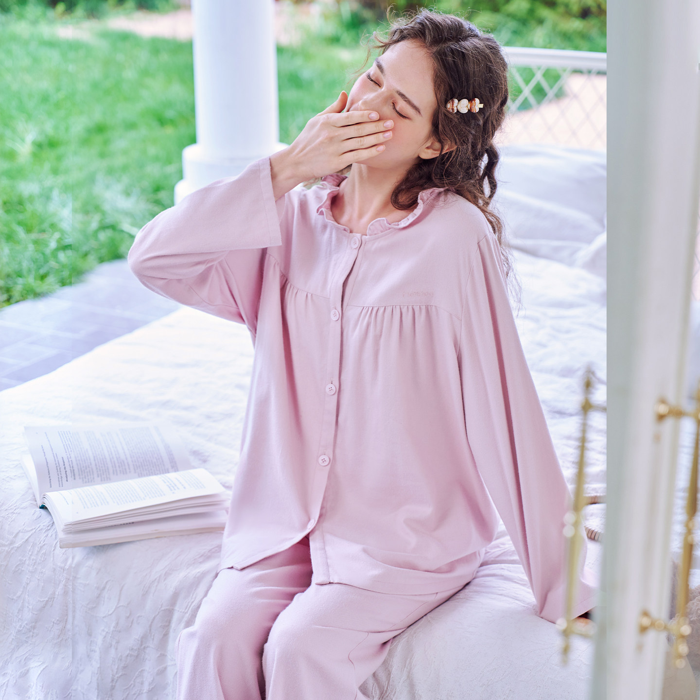 美标春秋新款长袖纯棉睡衣套装女可外穿甜美公主风全棉质家居服冬