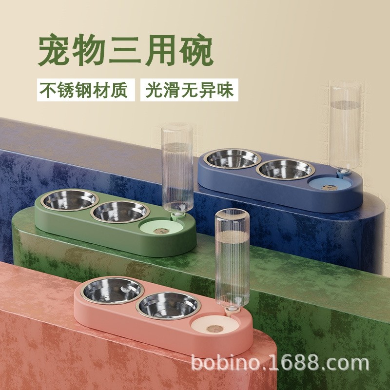 宠物三用猫狗食盆自动饮水器不锈钢狗狗猫咪食碗水碗一体盆喂食