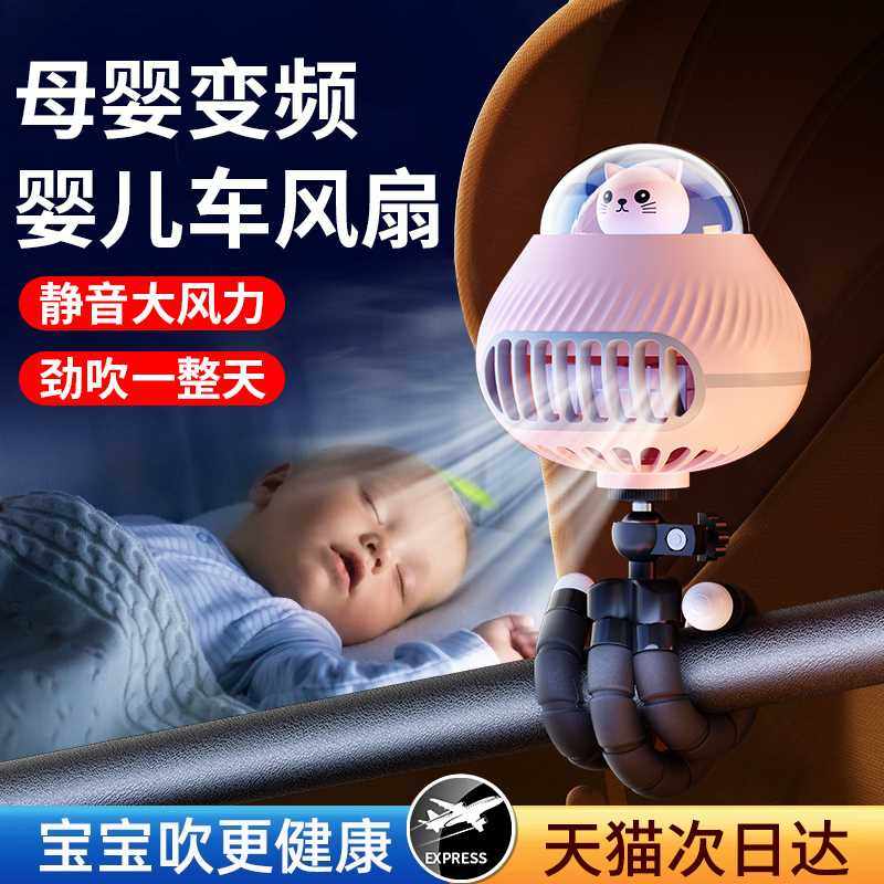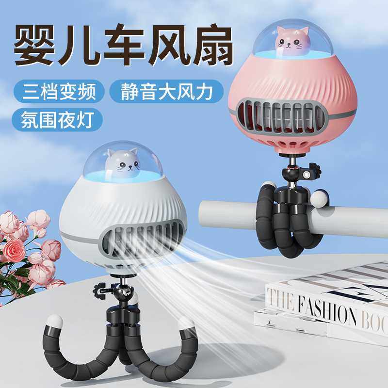 婴儿车风扇八爪鱼宝宝手推车可携式静音迷你小型遛娃神器床上夹式