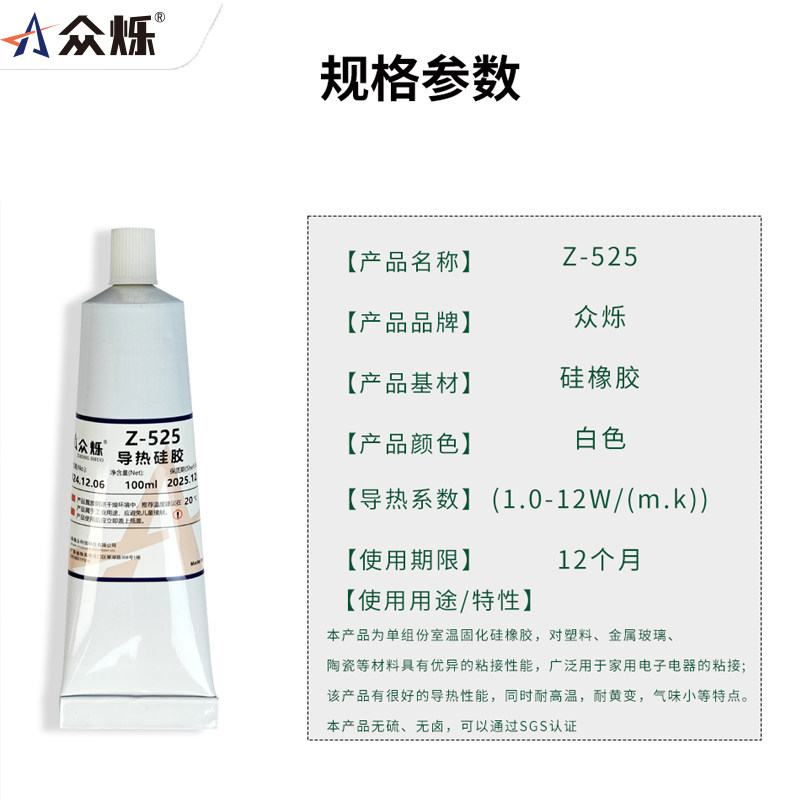 众烁Z-525RTV导热硅胶1.2wmk弹性绝缘耐高温导热胶水电器电子元器件LED灯珠设备粘接密封防水