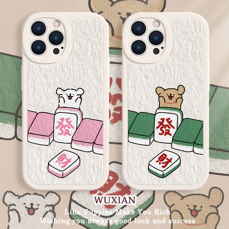 适用苹果17手机壳发财麻将iphone15/16/14小狗13promax情侣12mini可爱11中国风xsmax小众xr创意x小羊皮8plus