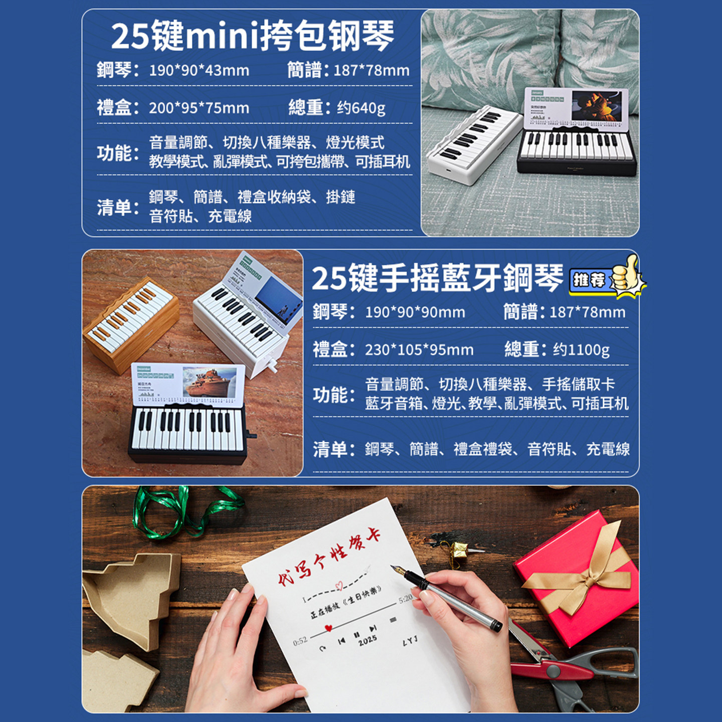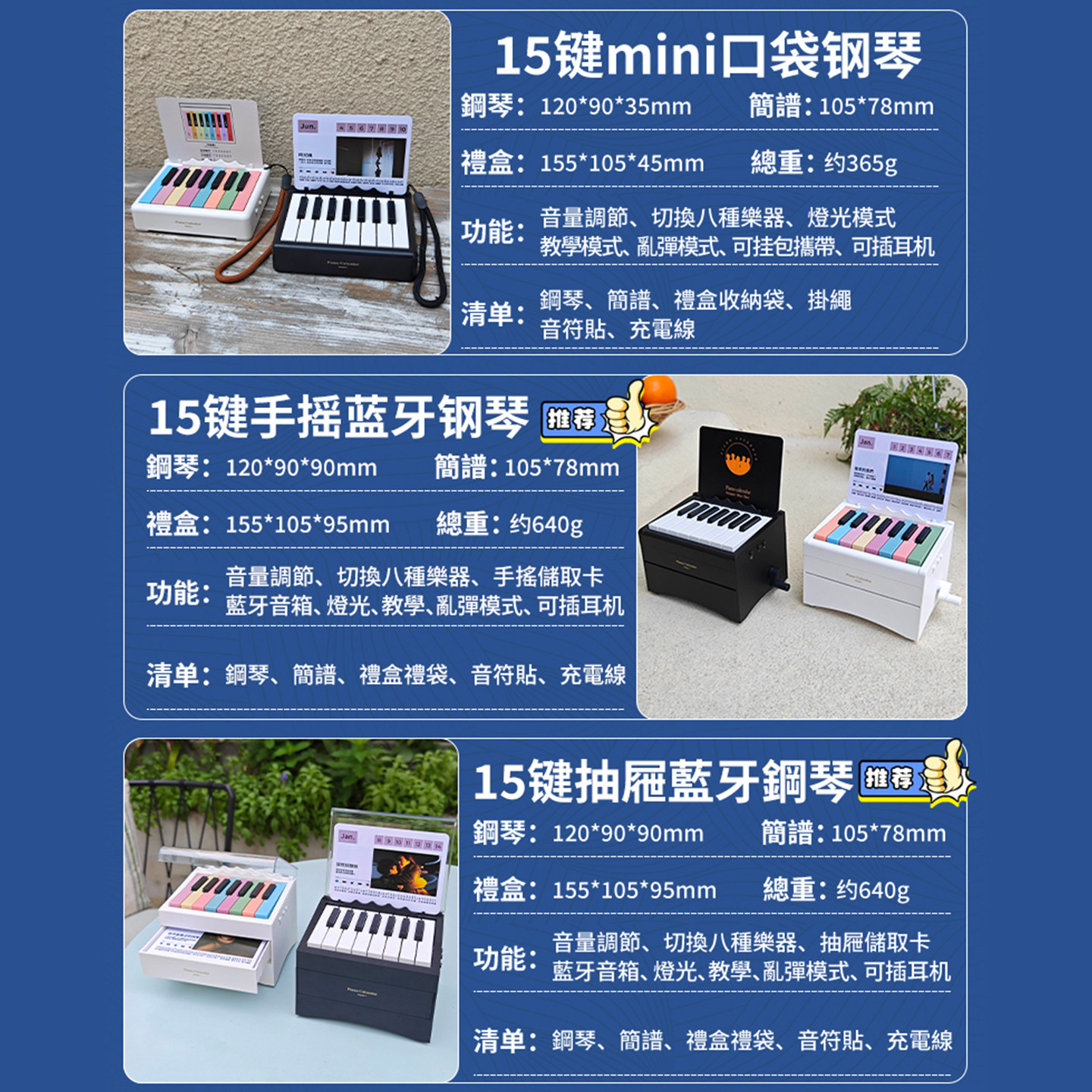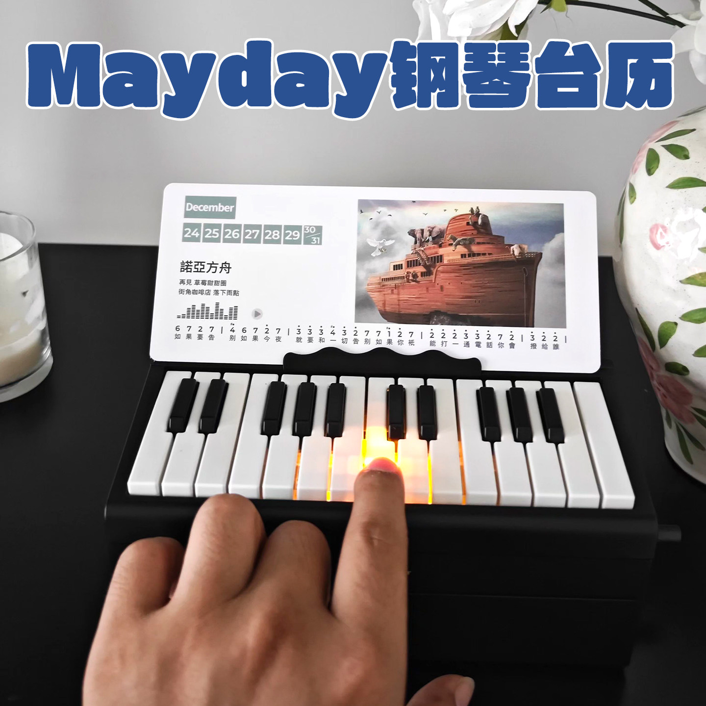 五月天可弹奏的钢琴台历万年历蓝牙音响带灯光送男女朋友礼物