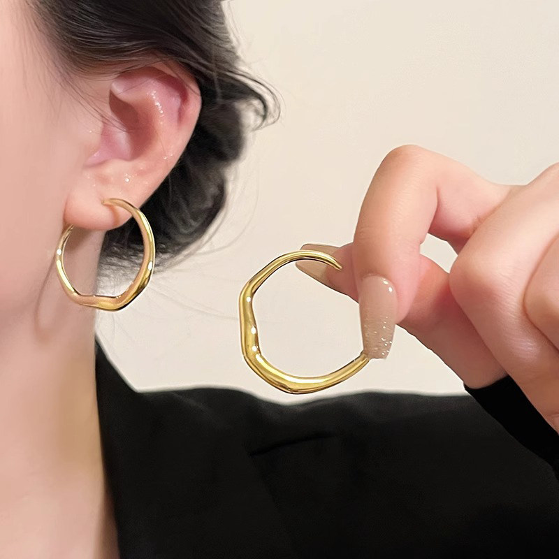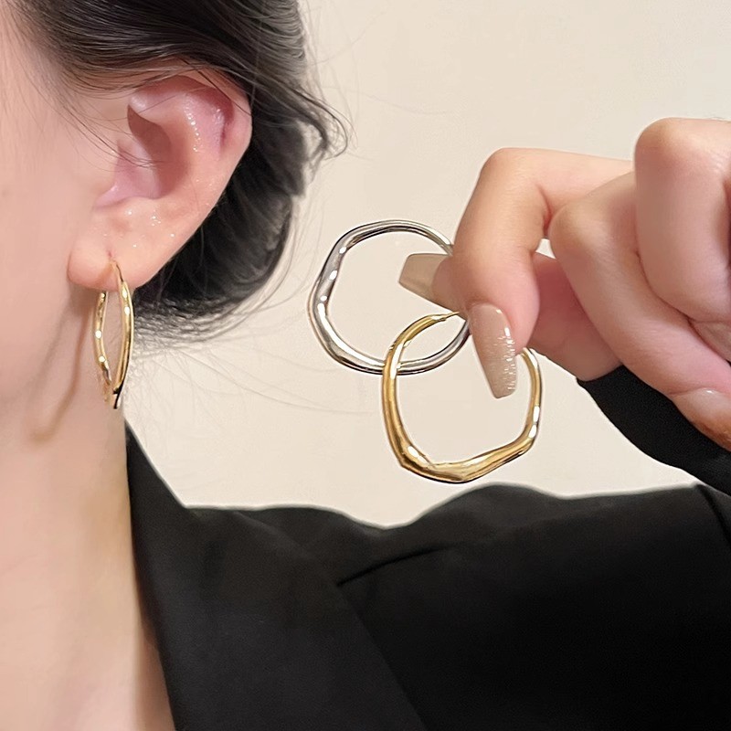欧美金属大圆圈耳环女2025新款不规则素圈耳圈简约高级感百搭耳饰