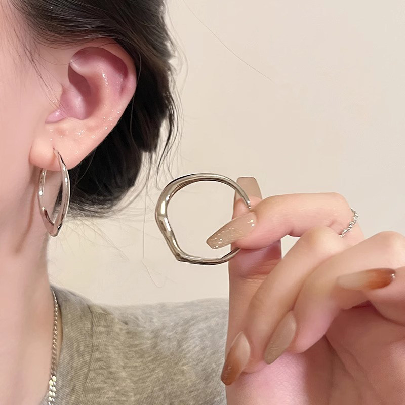 欧美法式夸张大圈圈耳环高级感耳圈银色耳饰2025新款爆款耳扣耳钉