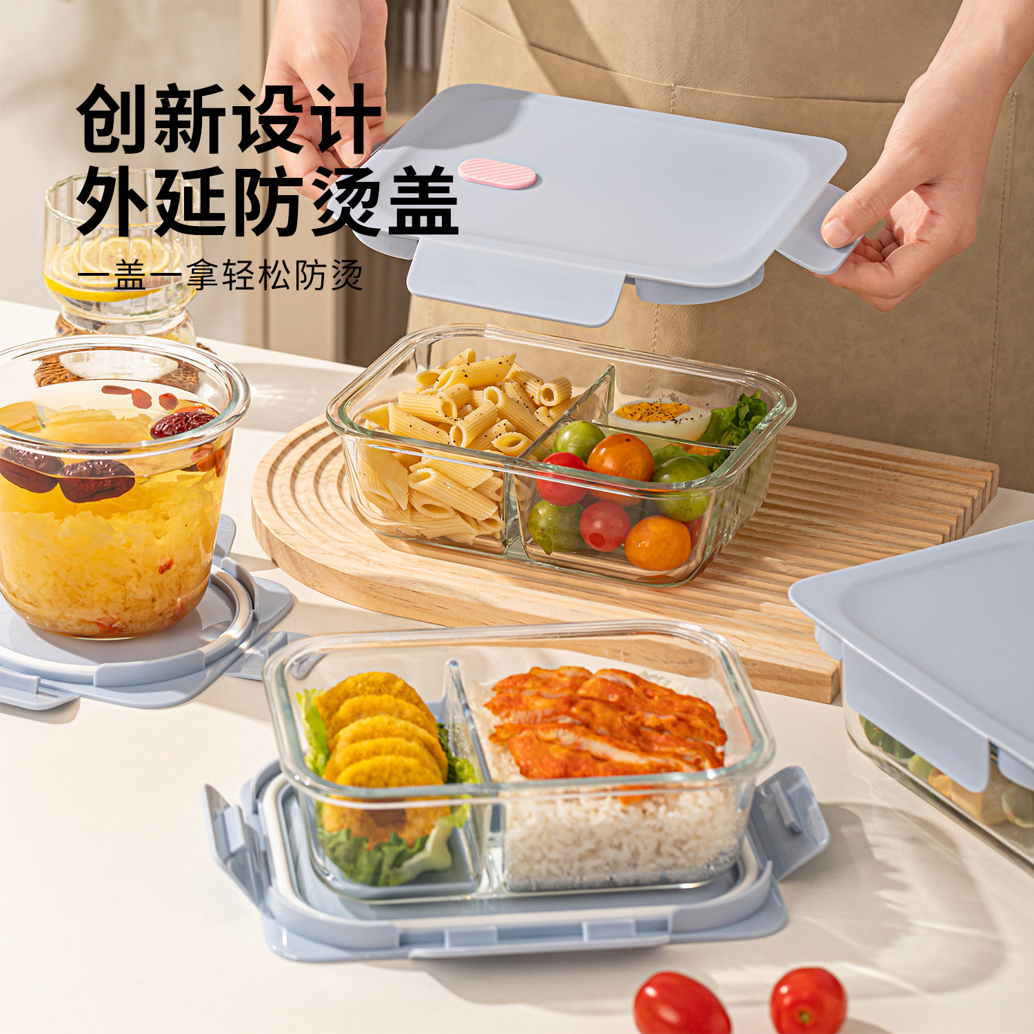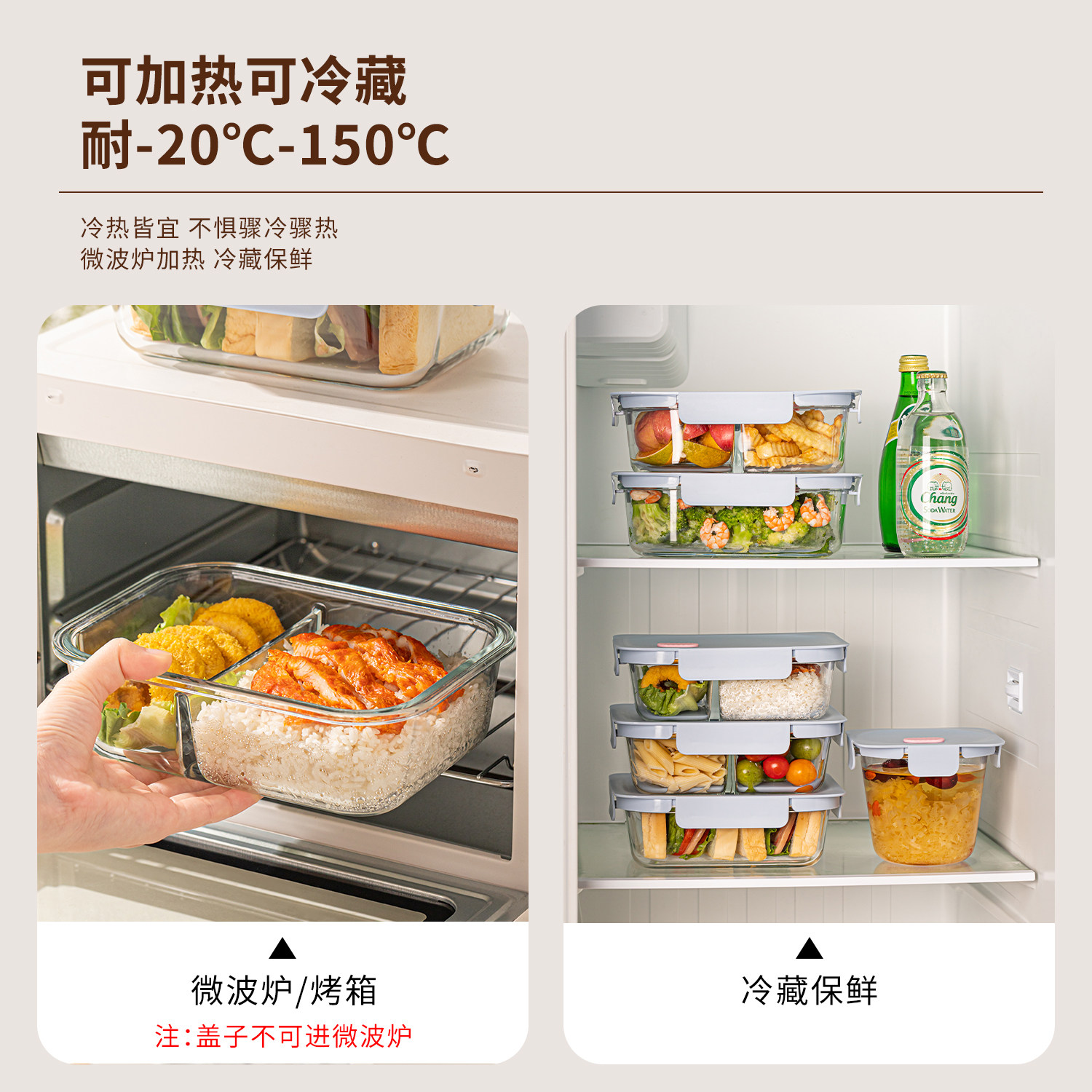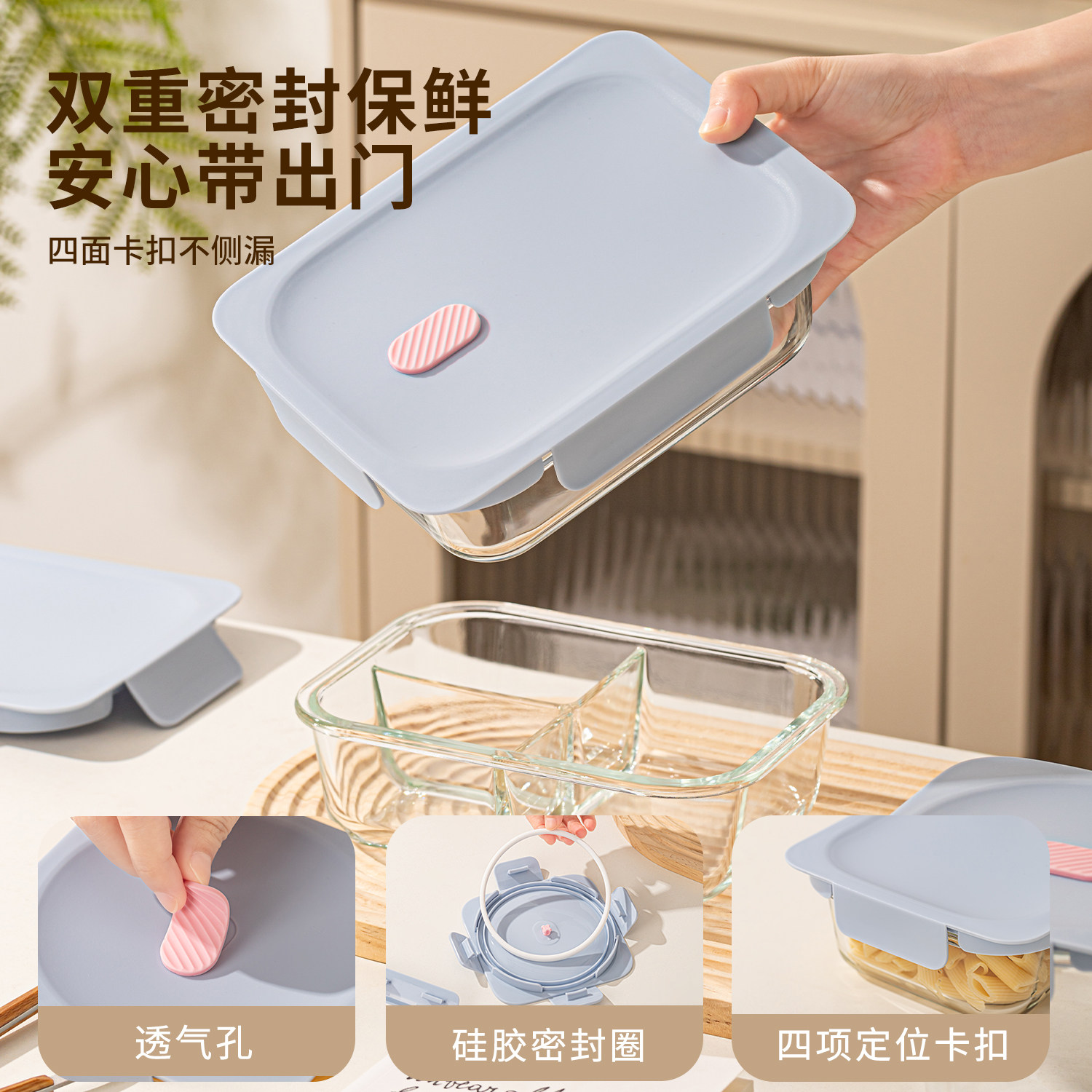 饭盒微波炉加热专用碗上班族带饭餐盒带盖玻璃保鲜盒分隔型便当盒