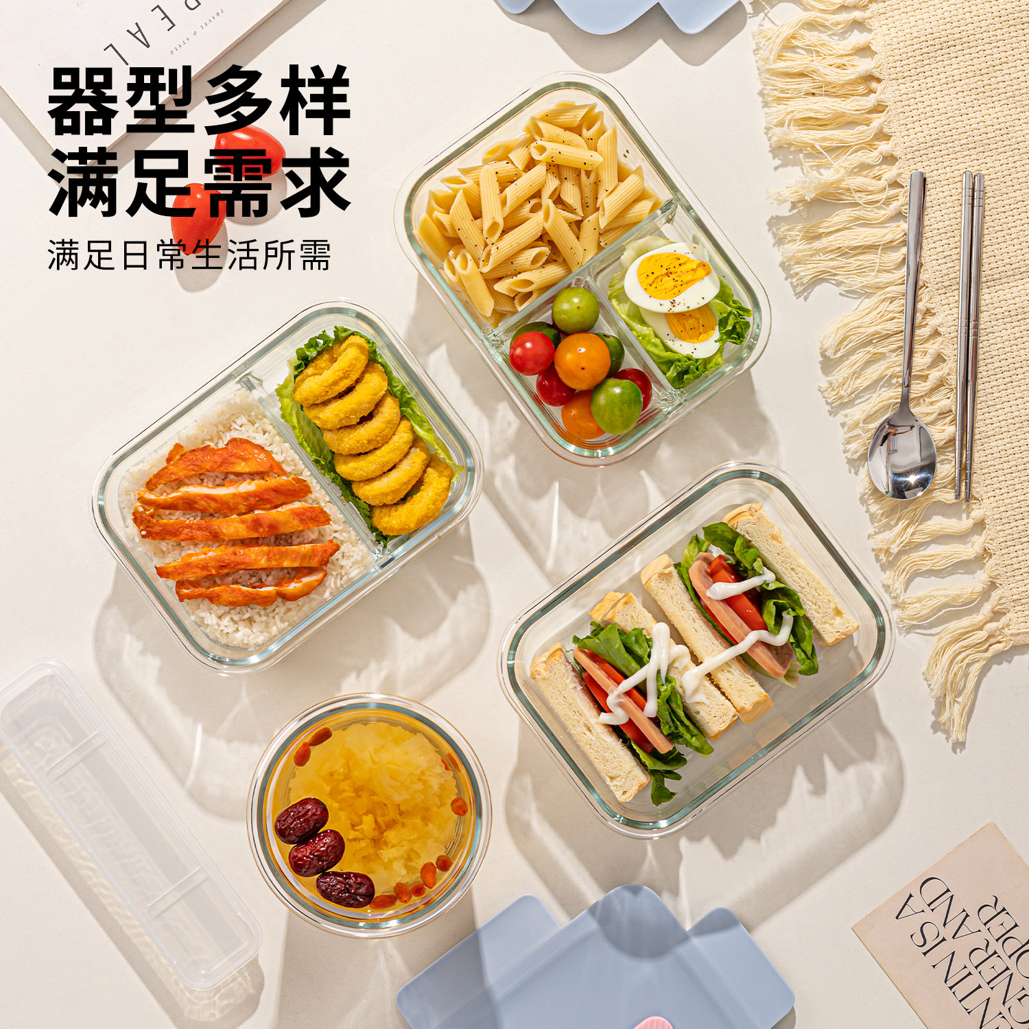 玻璃饭盒微波炉加热专用碗上班族带饭餐盒水果便当带盖密封保鲜盒