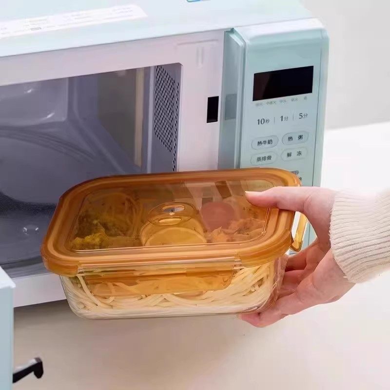 饭盒微波炉加热专用碗上班族带饭餐盒带盖玻璃保鲜盒分隔型便当盒