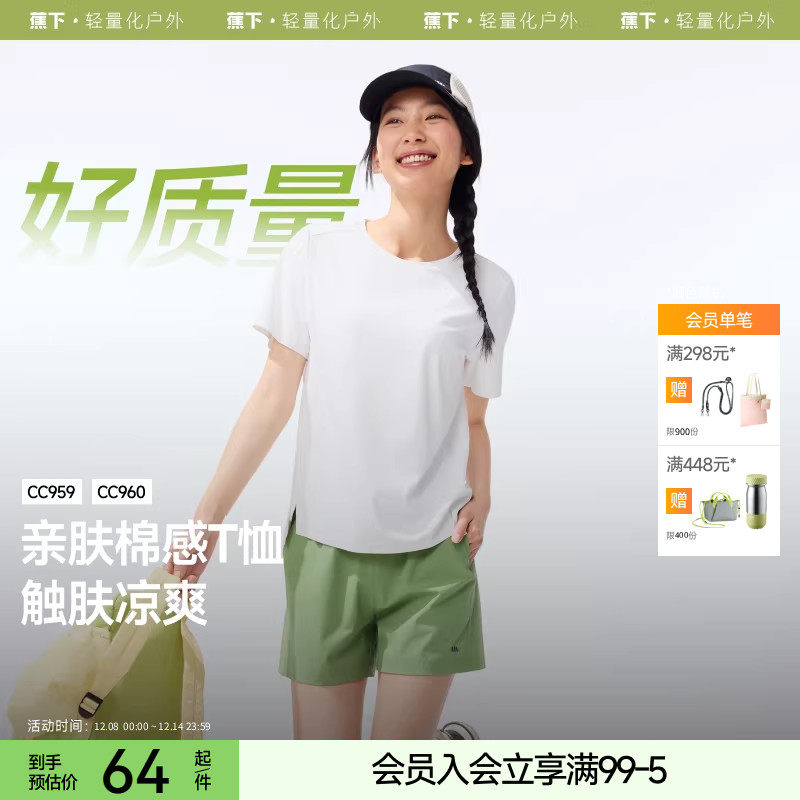 蕉下运动T恤女春夏白色短袖上衣速干轻薄透气百搭纯色圆领打底衫