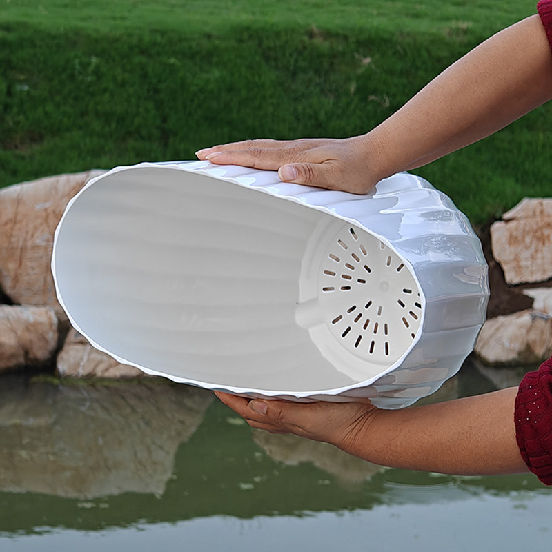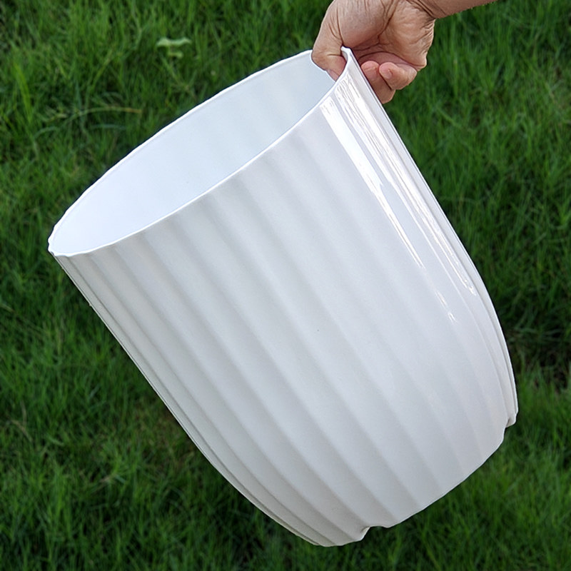 仿陶瓷花盆花卉绿植盆栽盆超大高档客厅天堂鸟塑料竖条纹落地竖纹