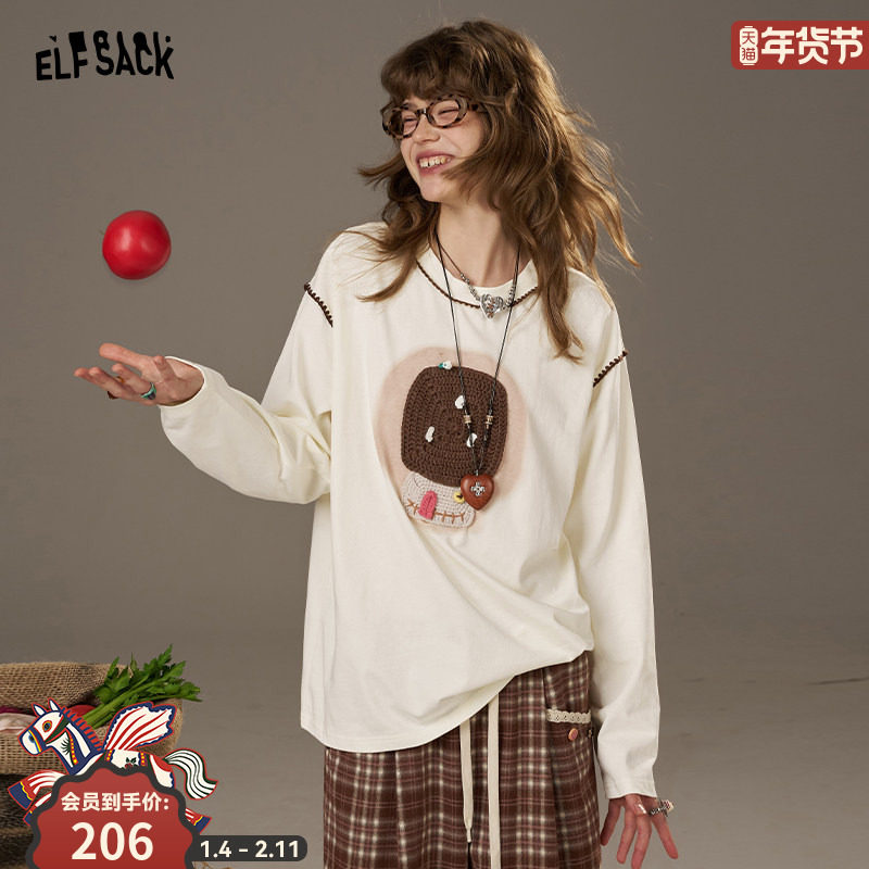 妖精的口袋米白色蘑菇长袖t恤女2026早春新款设计感宽松单款上衣