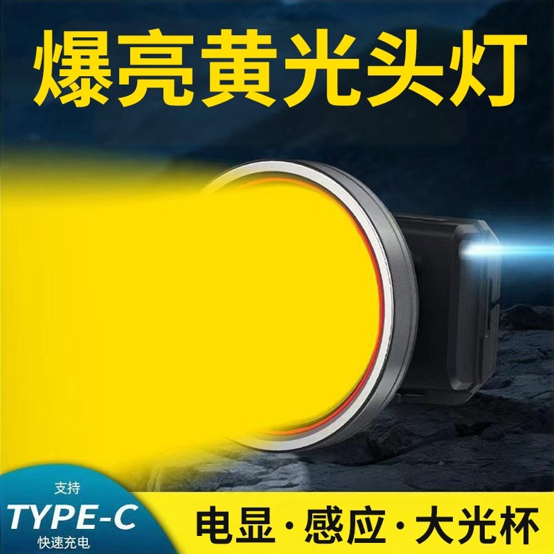 2025新款黄光头灯穿透力强照鱼专用强光超亮超长续航野外赶海抓鱼