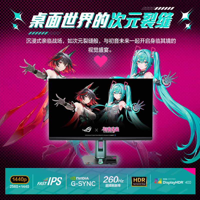 ROG 绝神 RO姬×初音未来版 XG27ACMEG-R 2K 240Hz Fast IPS 27英寸显示器 高刷电脑屏幕屏玩家国度