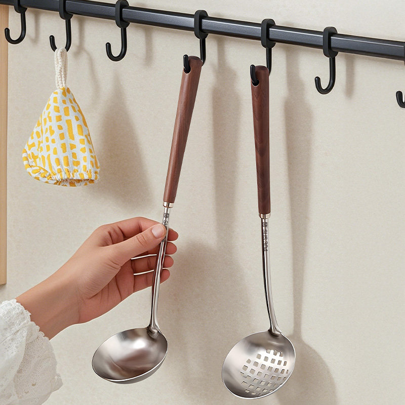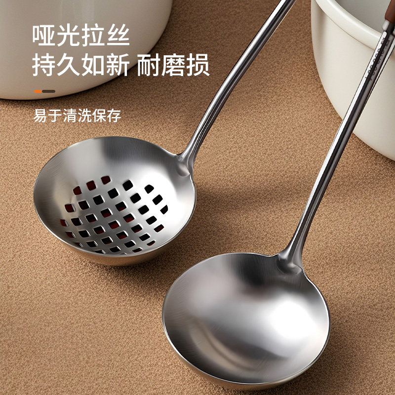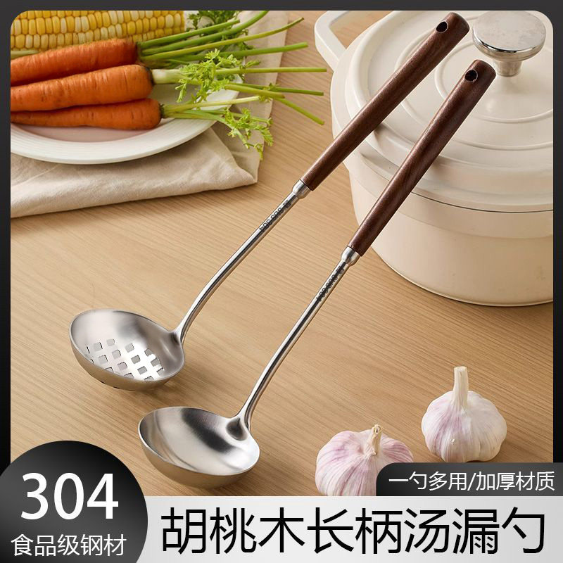 304不锈钢汤勺大号盛汤食品级家用汤勺子胡桃木长柄火锅专用漏勺