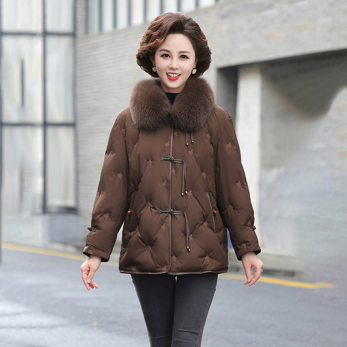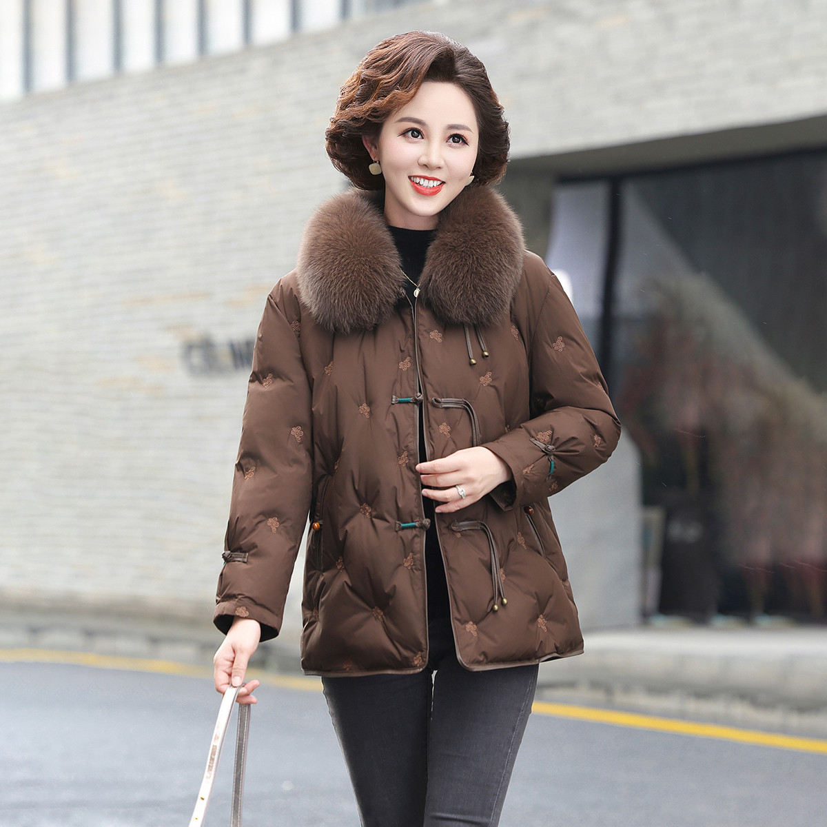雪中飞2025冬新款女士羽绒服优雅中式时髦狐狸毛领盘扣精致妈妈装