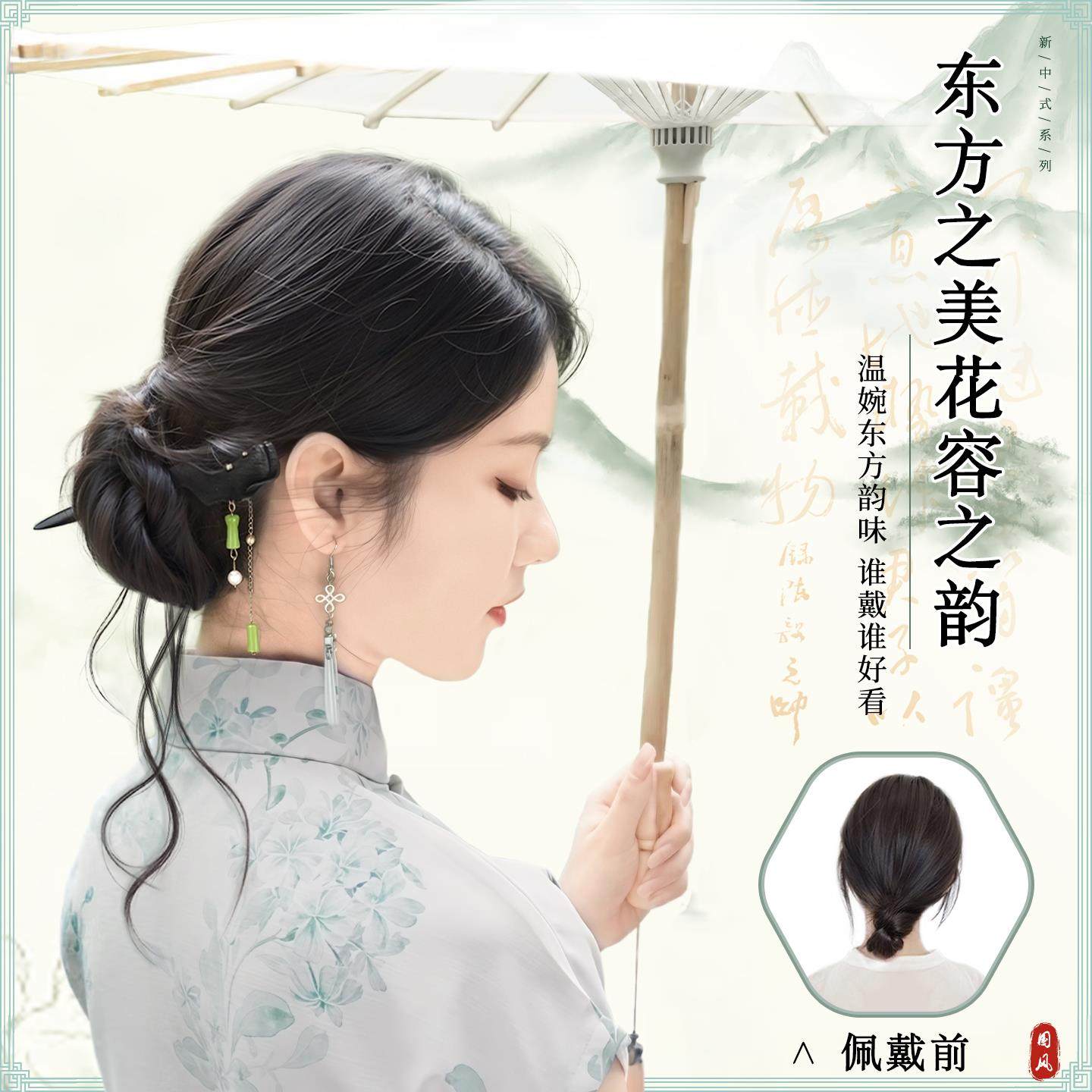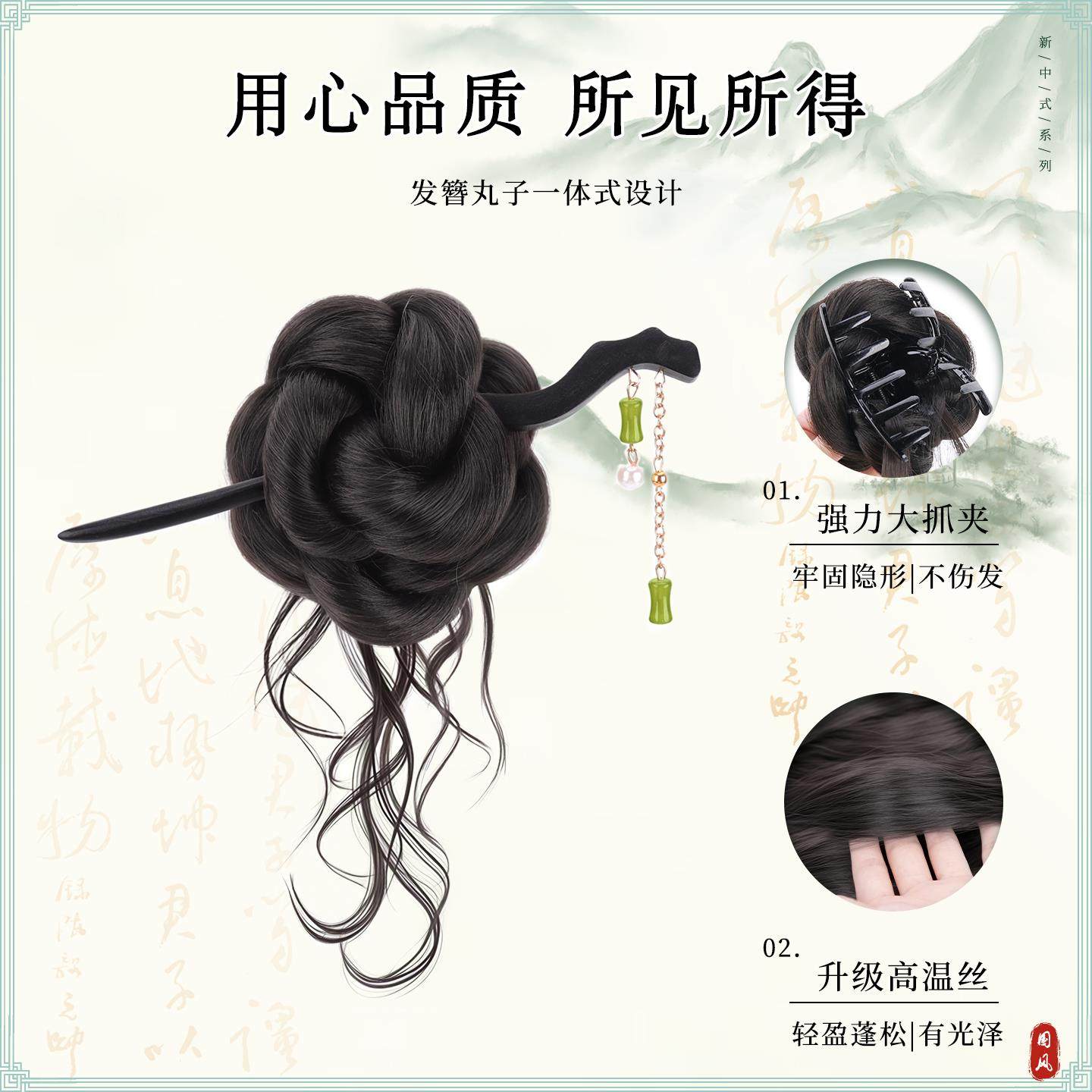 丸子头假发抓夹女新中式低扎发簪龙须花苞头盘发神器蓬松假发发包