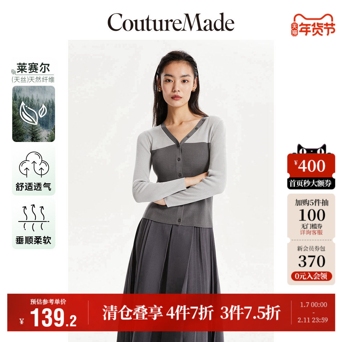 Vero Moda奥莱针织衫女秋冬清仓修身v领拼色气质通勤毛衣百搭流行