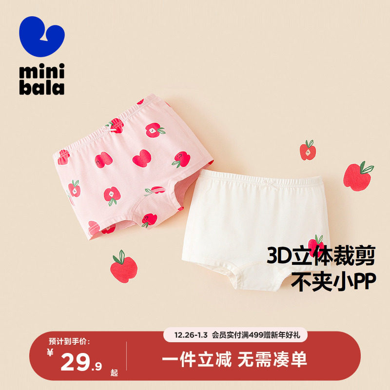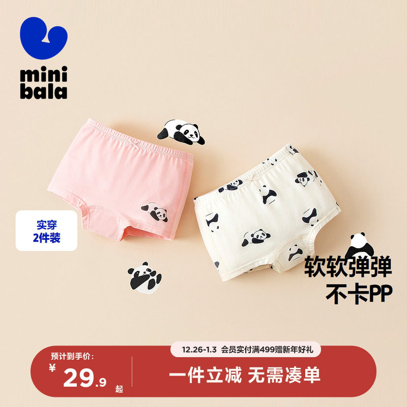 【2条装】迷你巴拉巴拉女童内裤棉感舒适透气不夹pp宝宝四角短裤
