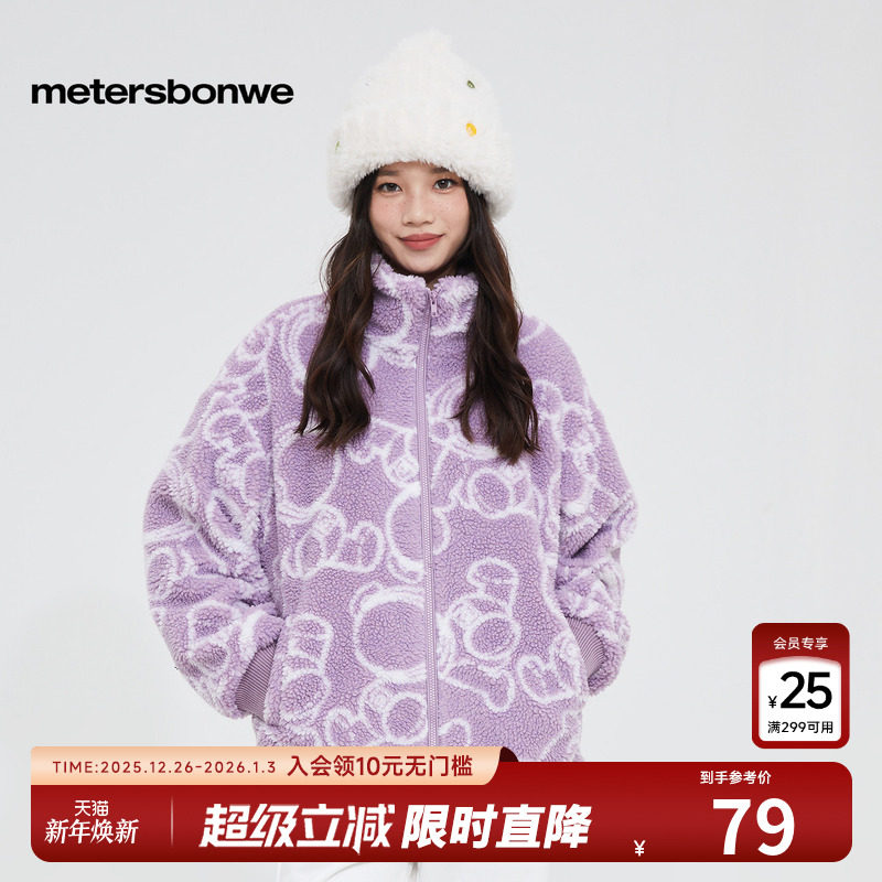 美特斯邦威棉衣女秋冬经典撞色设计时尚帅气立领仿羊羔绒提花外套