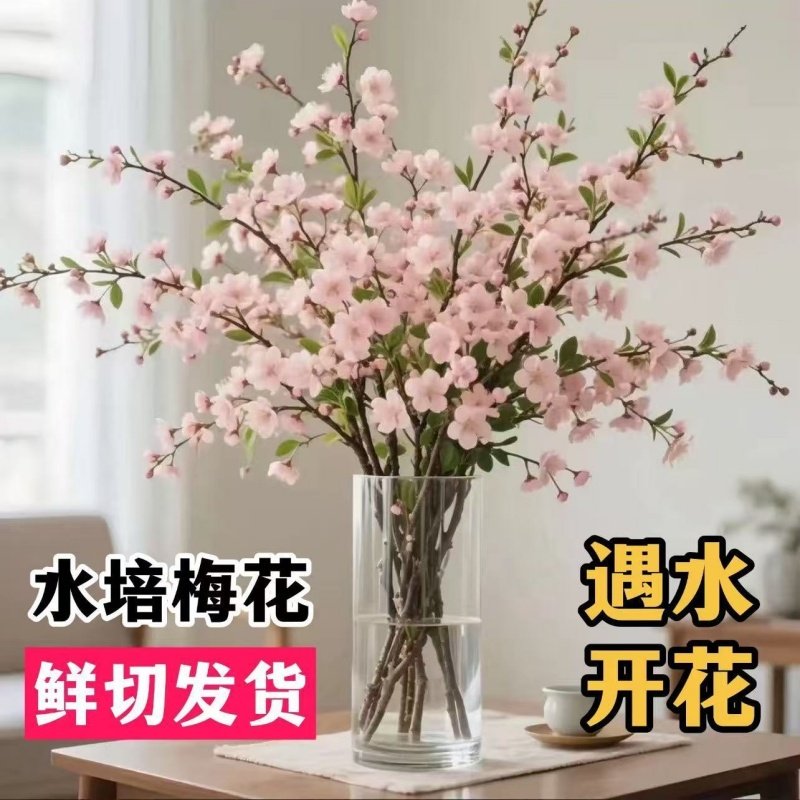懒人水培花遇水开花鲜切梅花鲜枝室内水培干枝年宵花卉客厅阳台