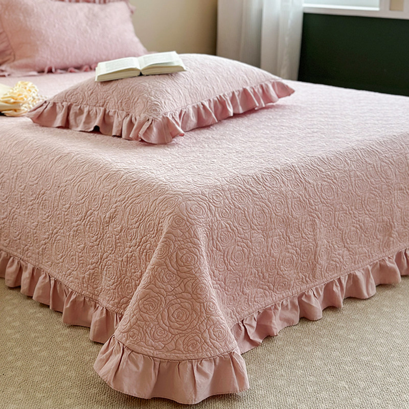 外贸绣花床盖三件套 空调被夏凉被薄款单件 绗缝被床单ins床裙式