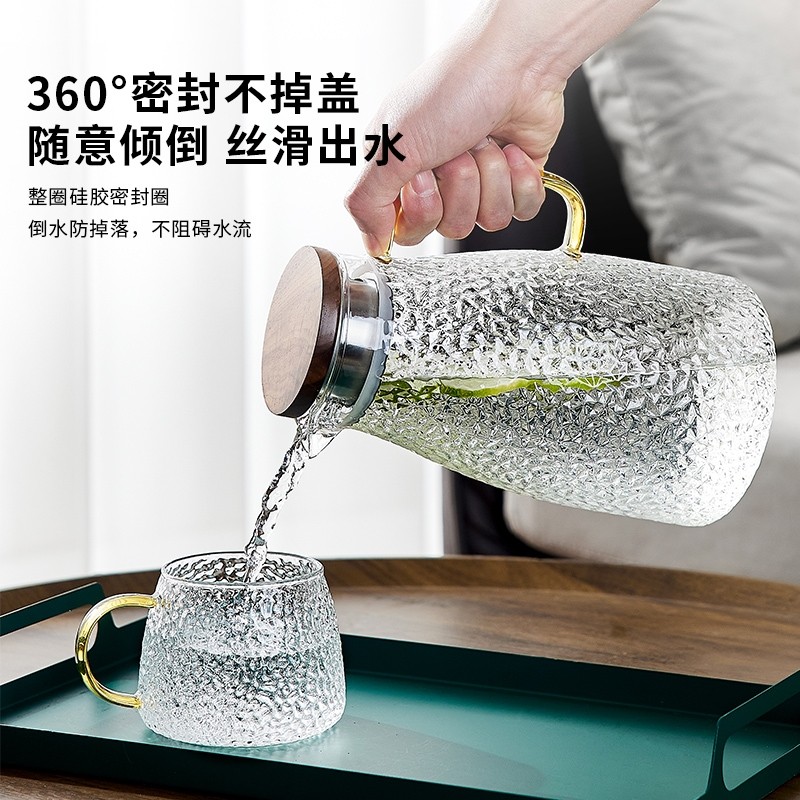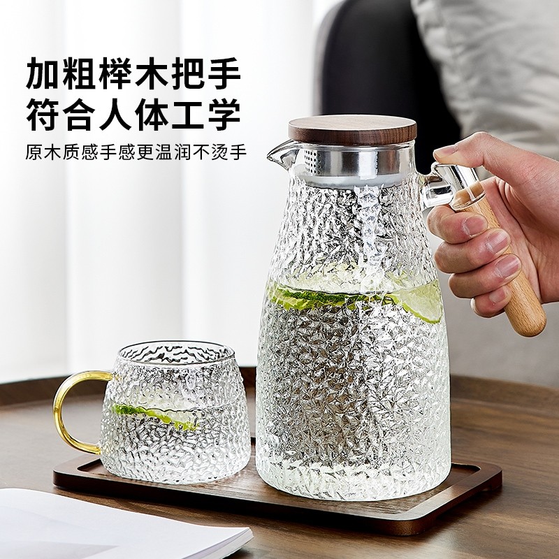 青苹果冷水壶玻璃耐高温凉水壶家用大容量水杯套装耐热防摔扎壶果
