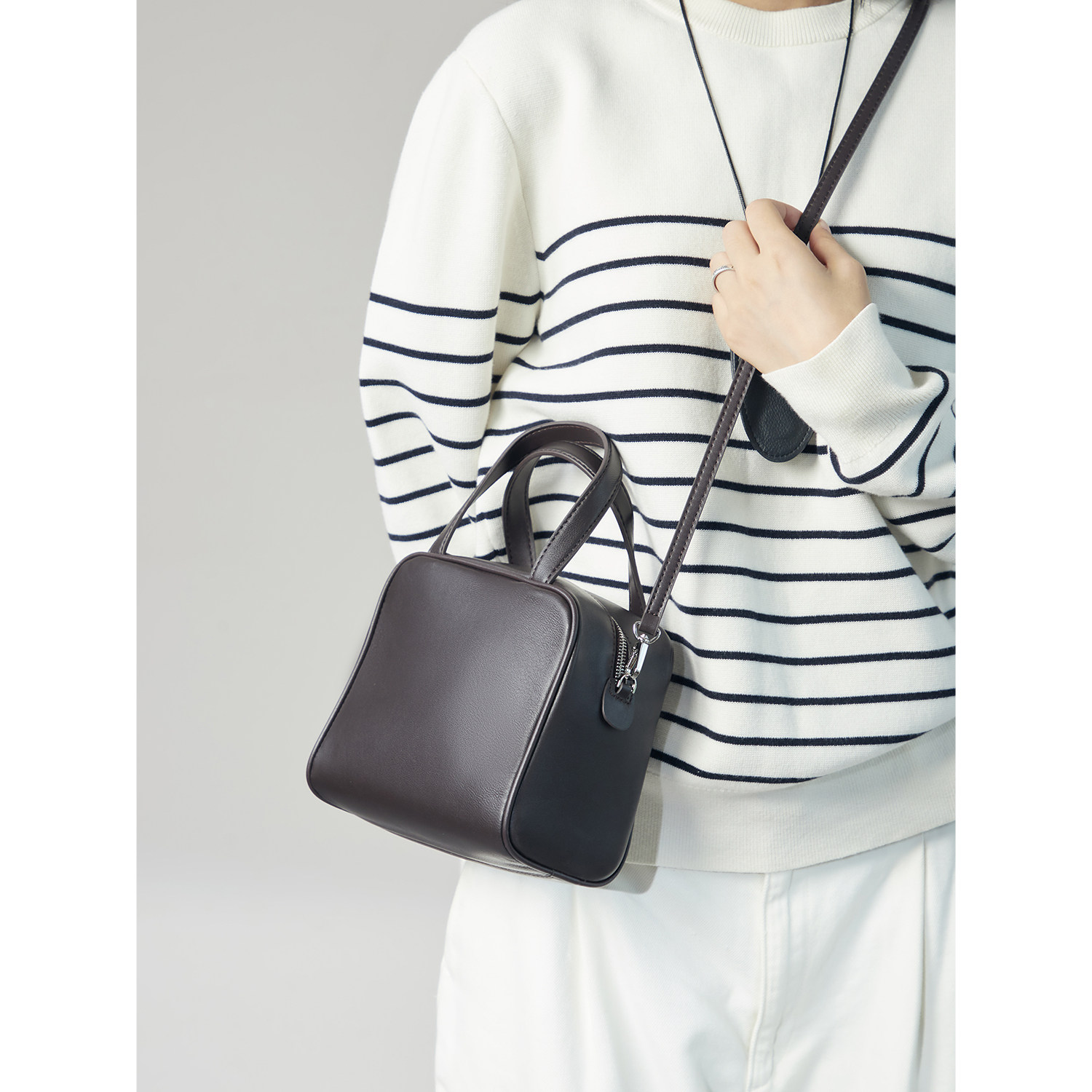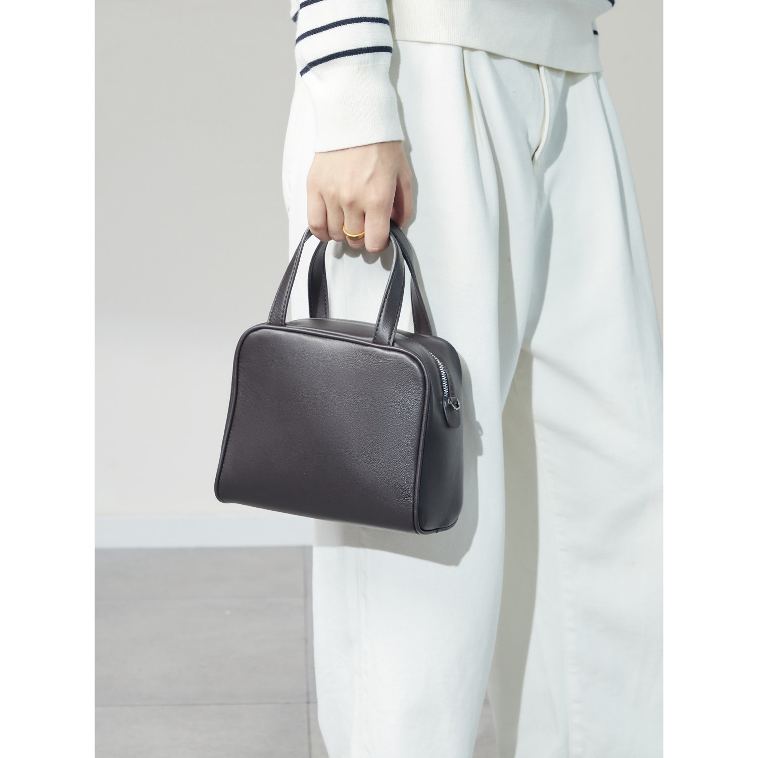 伊米妮秋冬新款大容量真皮羊皮豆腐包小众设计手提斜挎包保龄球