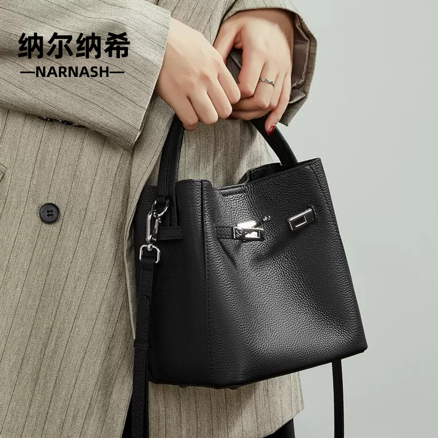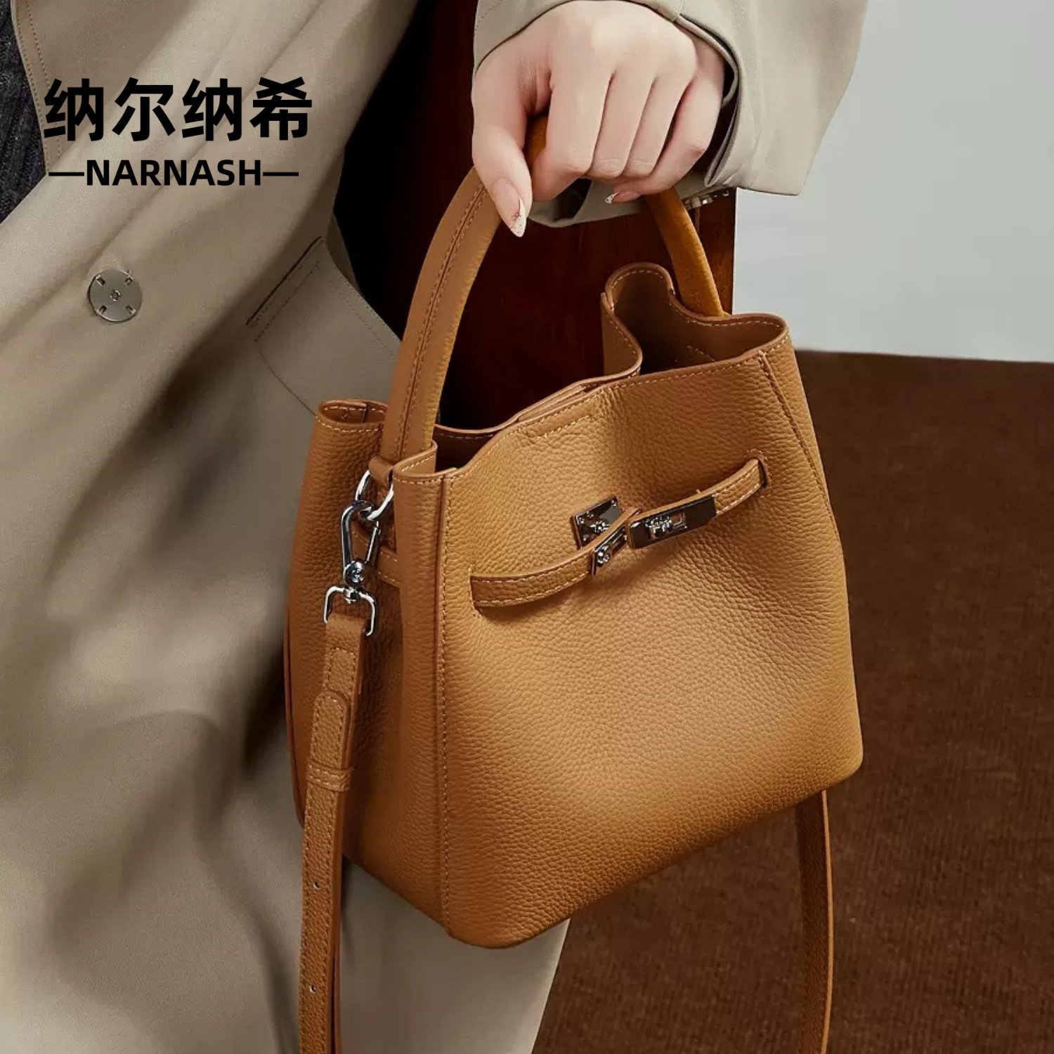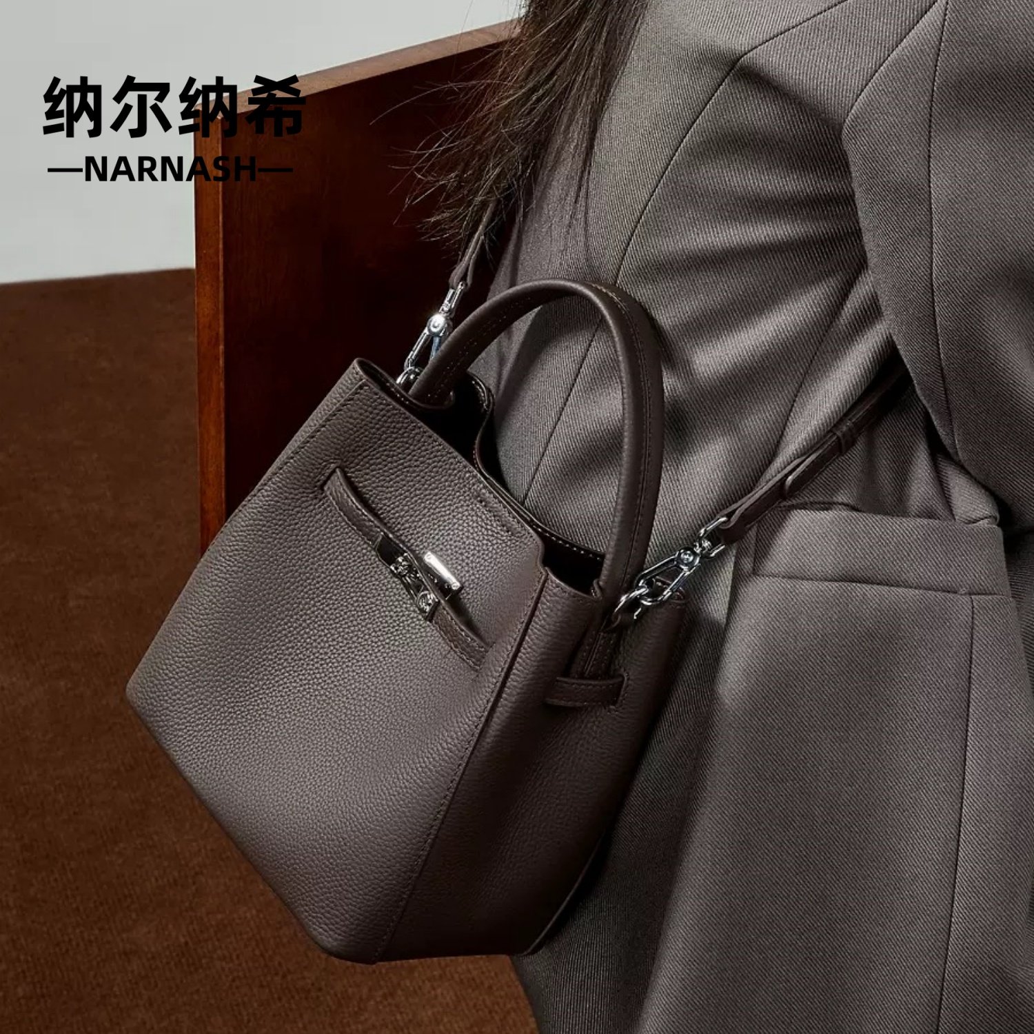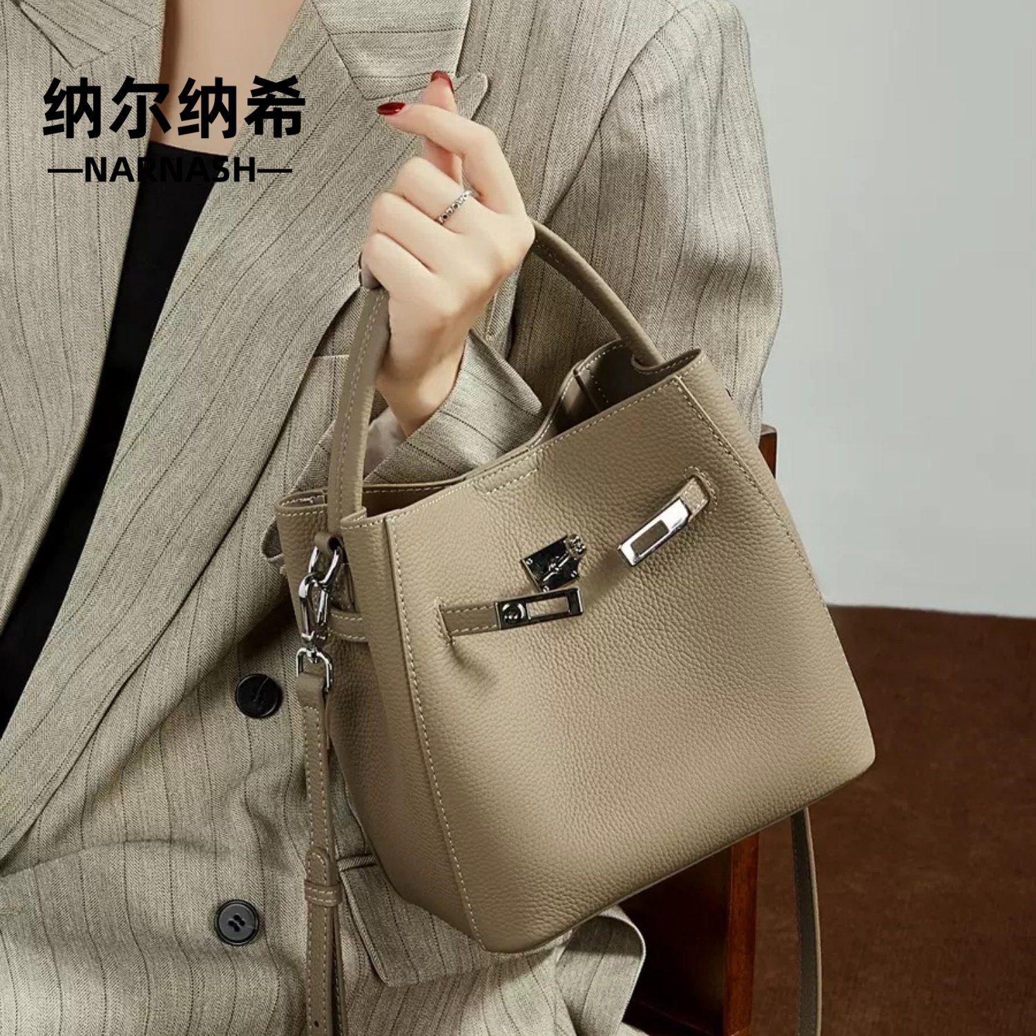 纳尔纳希头层牛皮凯莉水桶包网红爆款真皮手提包单肩斜挎包高级感