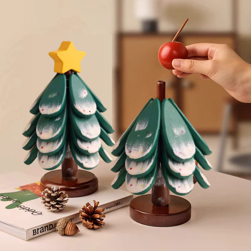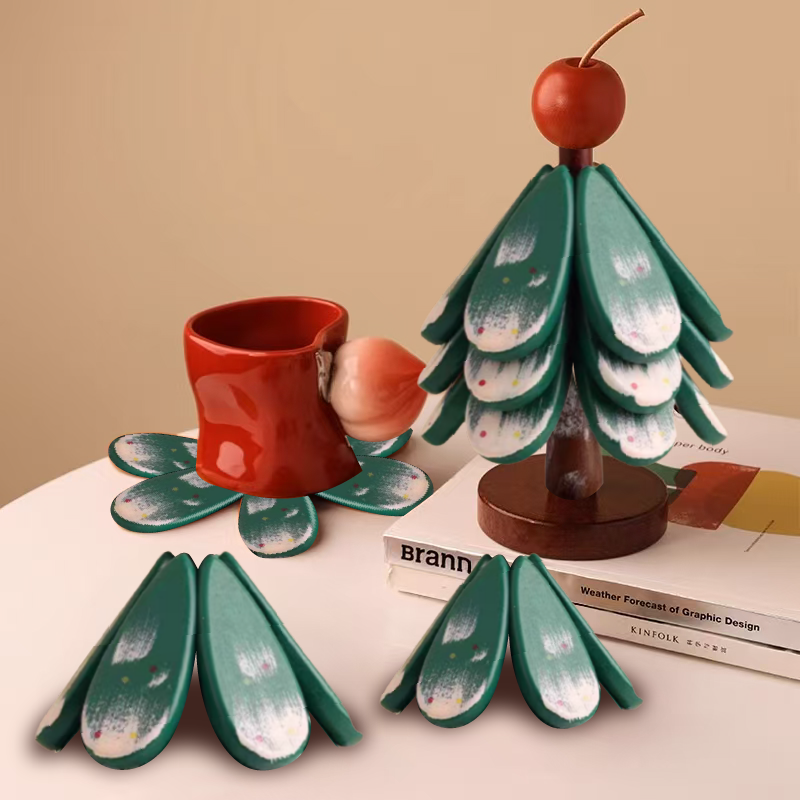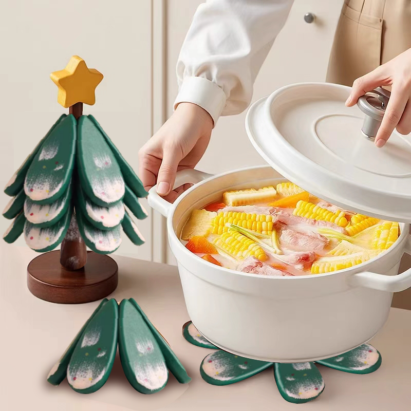 高级感圣诞树隔热垫一棵树实木餐桌创意摆件小树防烫杯垫锅垫餐具
