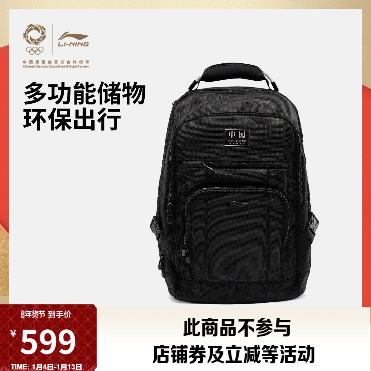李宁荣耀系列双肩包男包女包25新款防泼水背包书包学生环保运动包