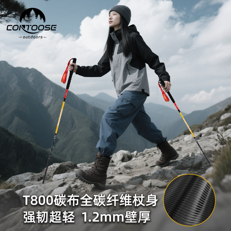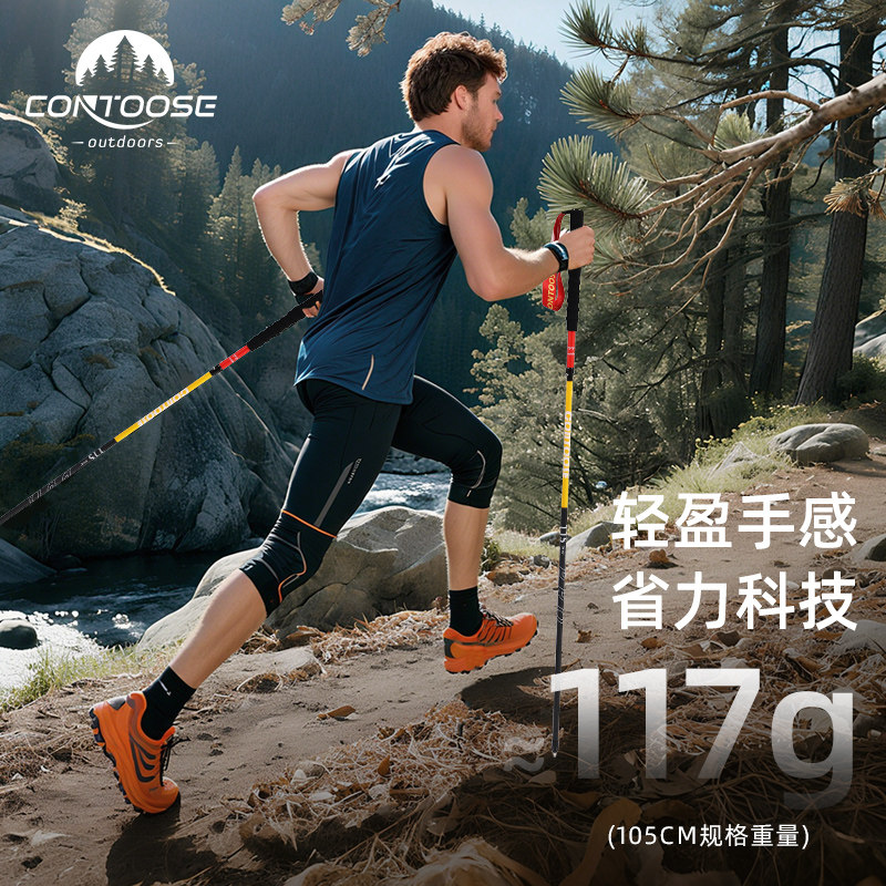 匡途专业户外越野跑步杖登山杖手杖碳纤维男女款折叠爬山徒步装备