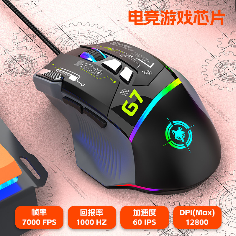 G7有线USB游戏鼠标发光电竞宏编程台式机笔记本电脑办公游戏吃鸡