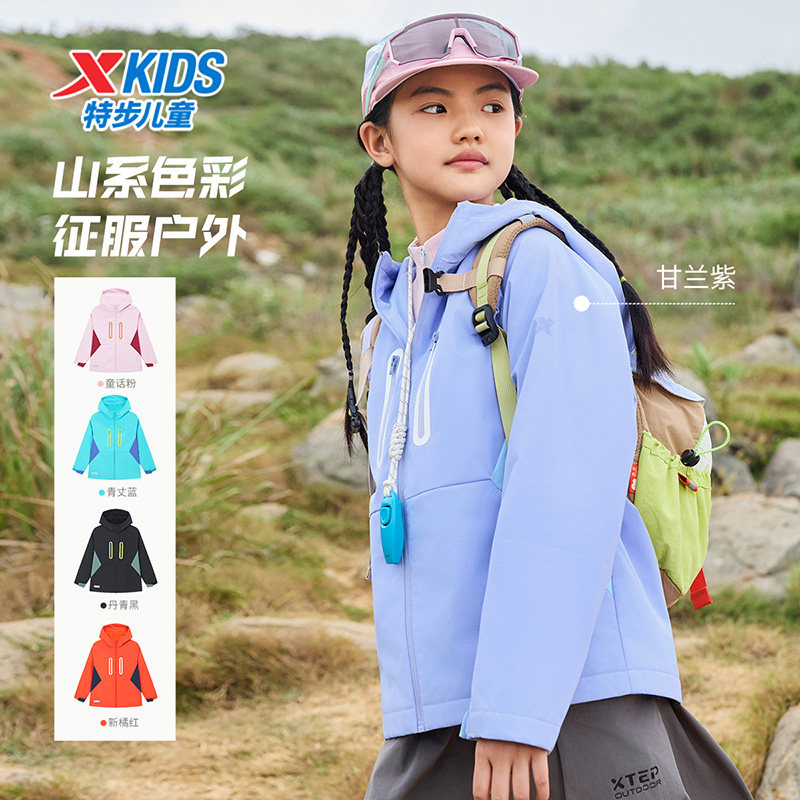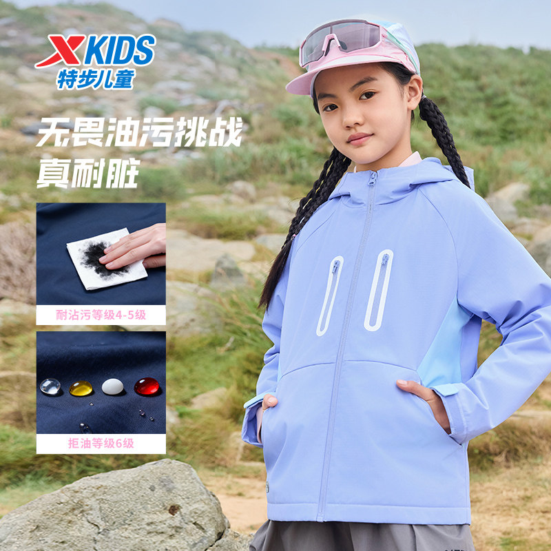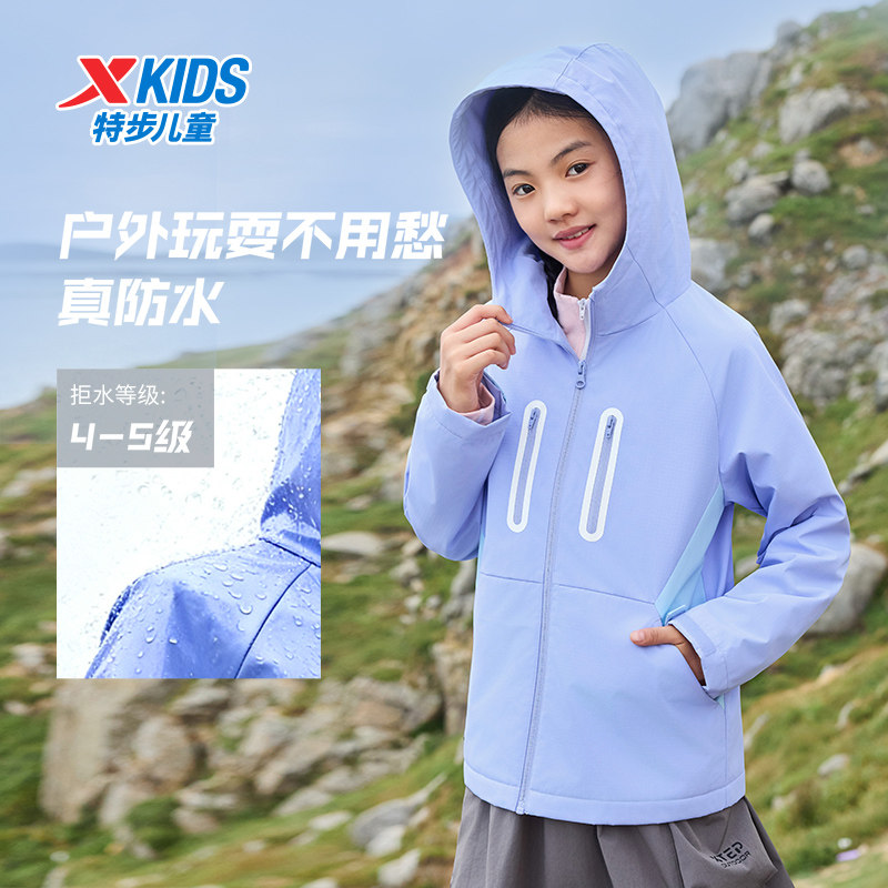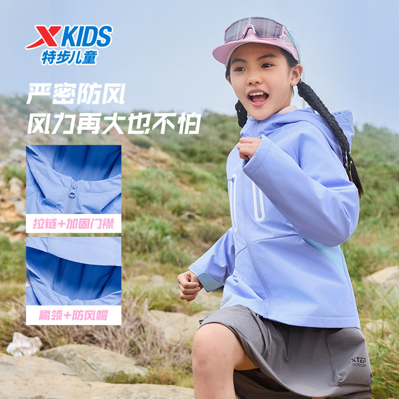 特步童装秋冬新款男童女童保暖休闲防风外套儿童运动连帽学生风衣