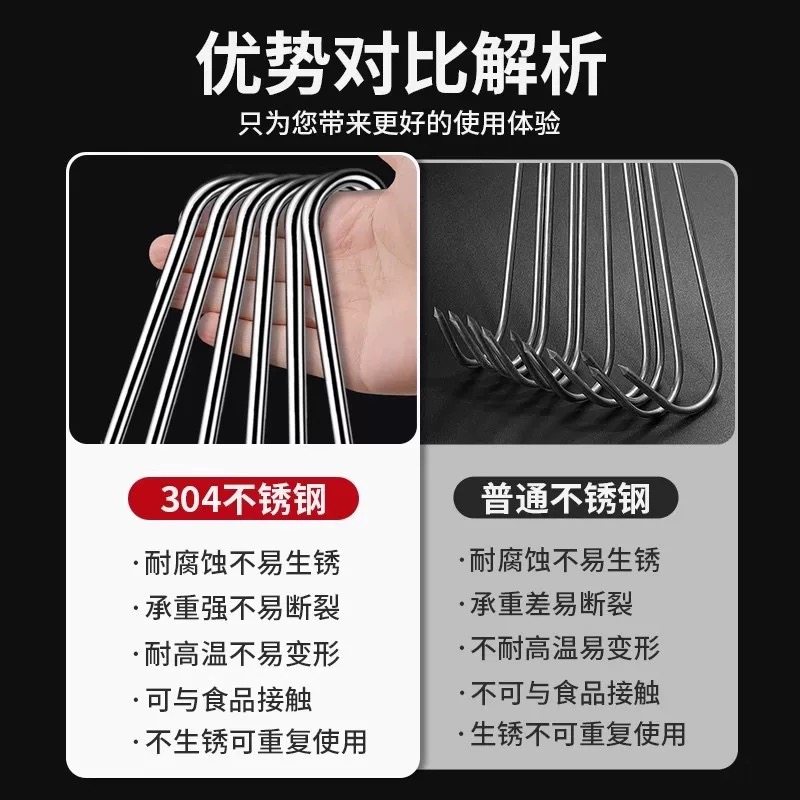 腊肉挂钩挂肉钩子不锈钢S型晒鱼挂香肠猪肉勾加粗S钩厨房承重腊肠