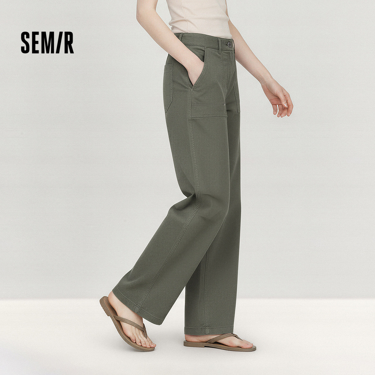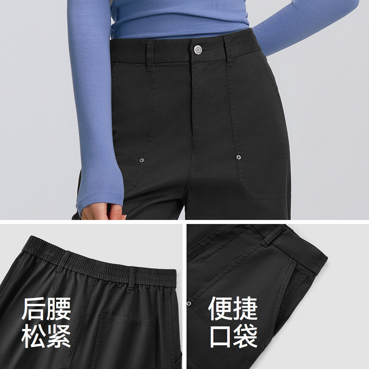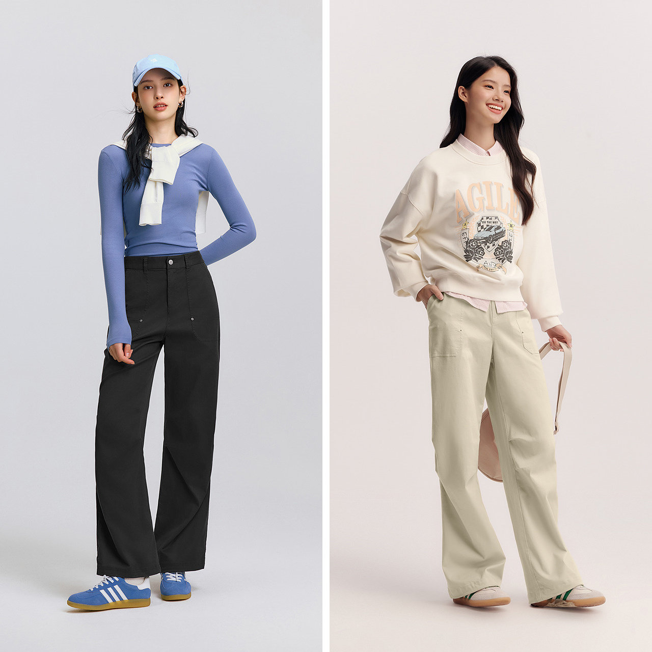 森马休闲裤女春季半松紧腰长裤简约工装风户外潮酷街头潮流阔腿裤