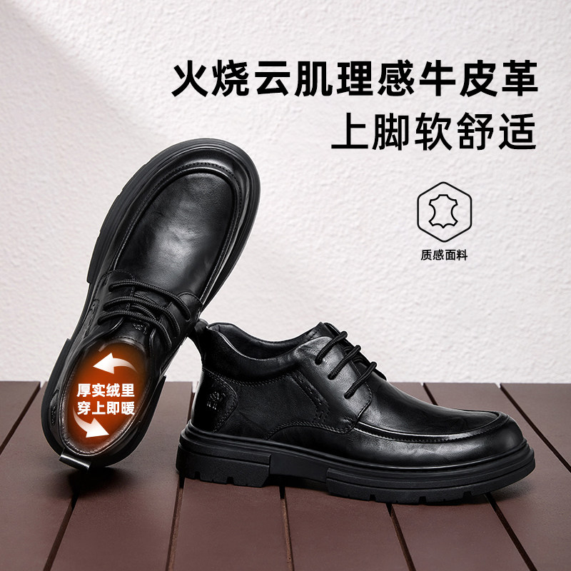 骆驼男鞋冬季2025新款牛皮商务休闲加绒皮鞋男士中年爸爸保暖棉鞋