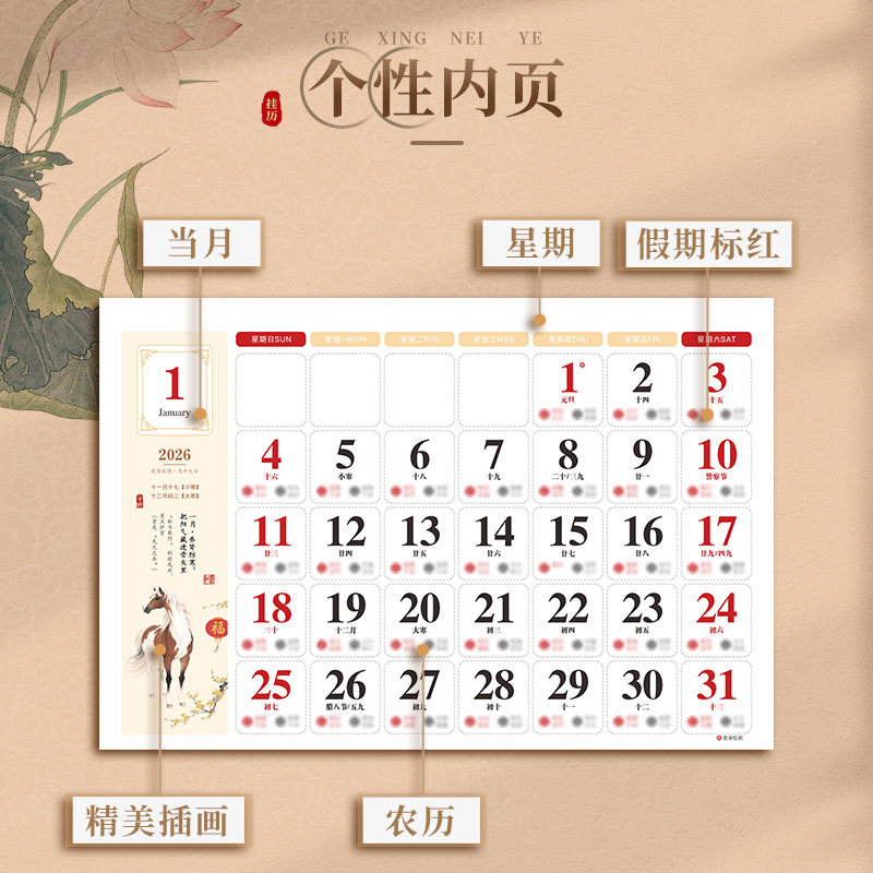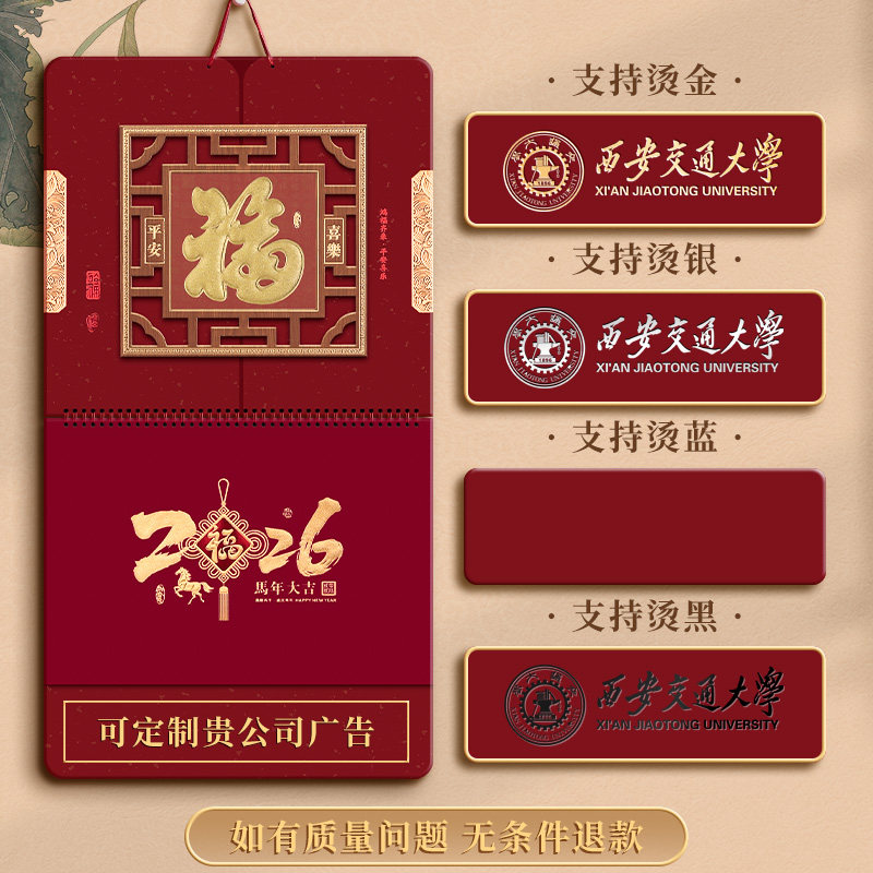日历2026年新款手撕家用挂墙式挂历马年精品正六开大六开福字特大号月历高档商务礼品公司企业定制可印logo