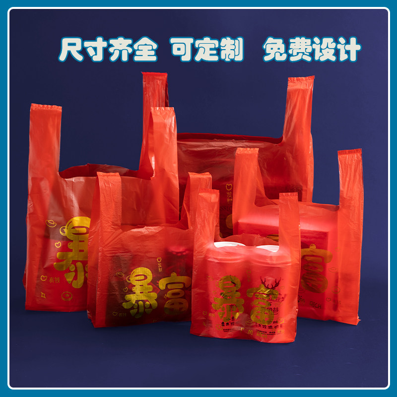 福字红色背心塑料袋食品结婚喜庆手提袋子大号加厚外卖礼品方便袋