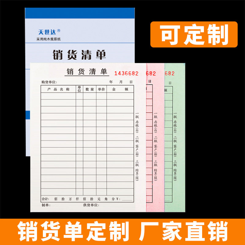天世达二联送货单2联3联销货清单36开大号三联销售清单批发